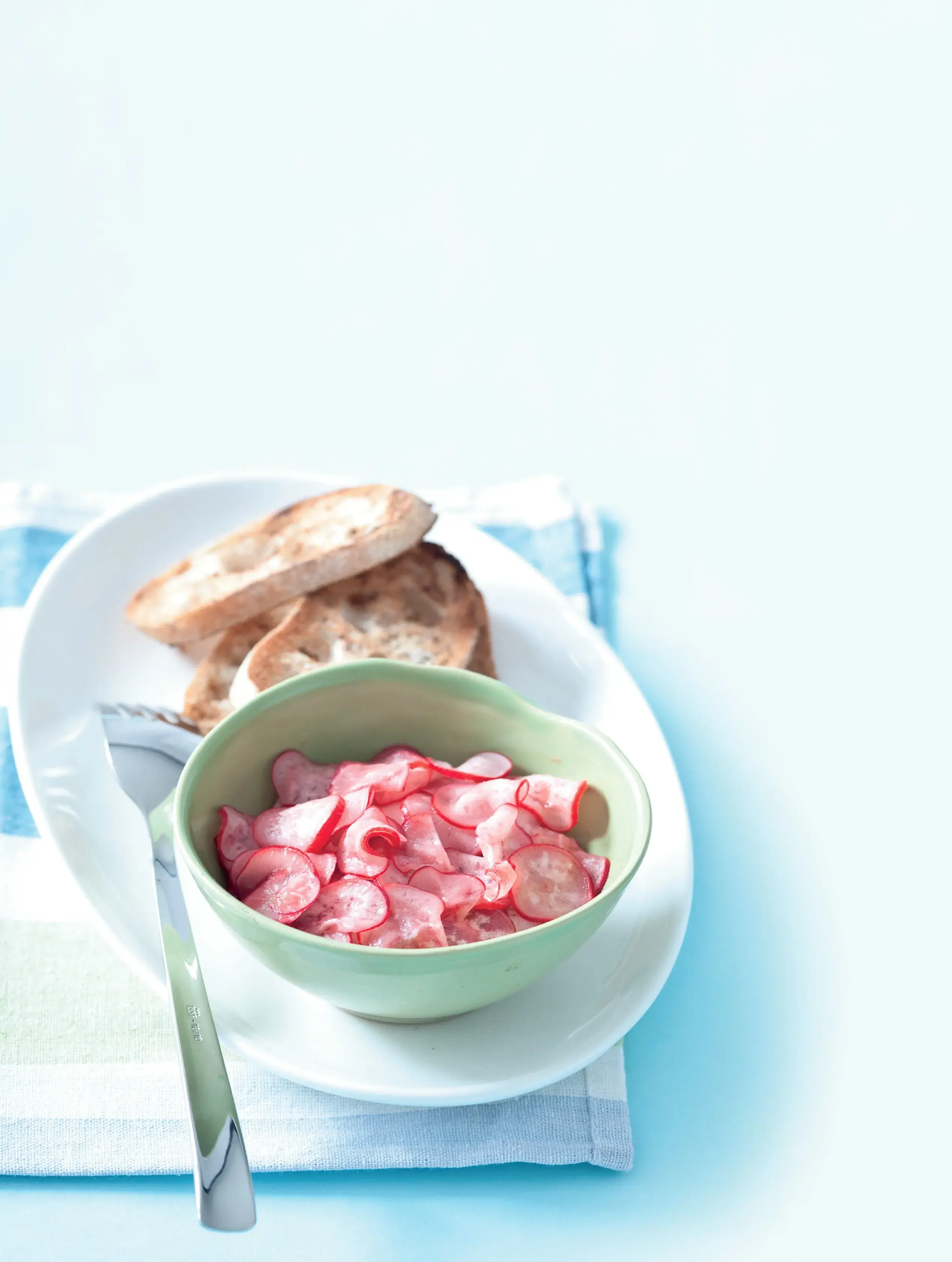 Sladkokyselý ředkvičkový salát oceníte všude tam, kde byste si dali kyselou okurku. Naložené ředkvičky jsou dobré i samy o sobě s opečenou bagetkou.