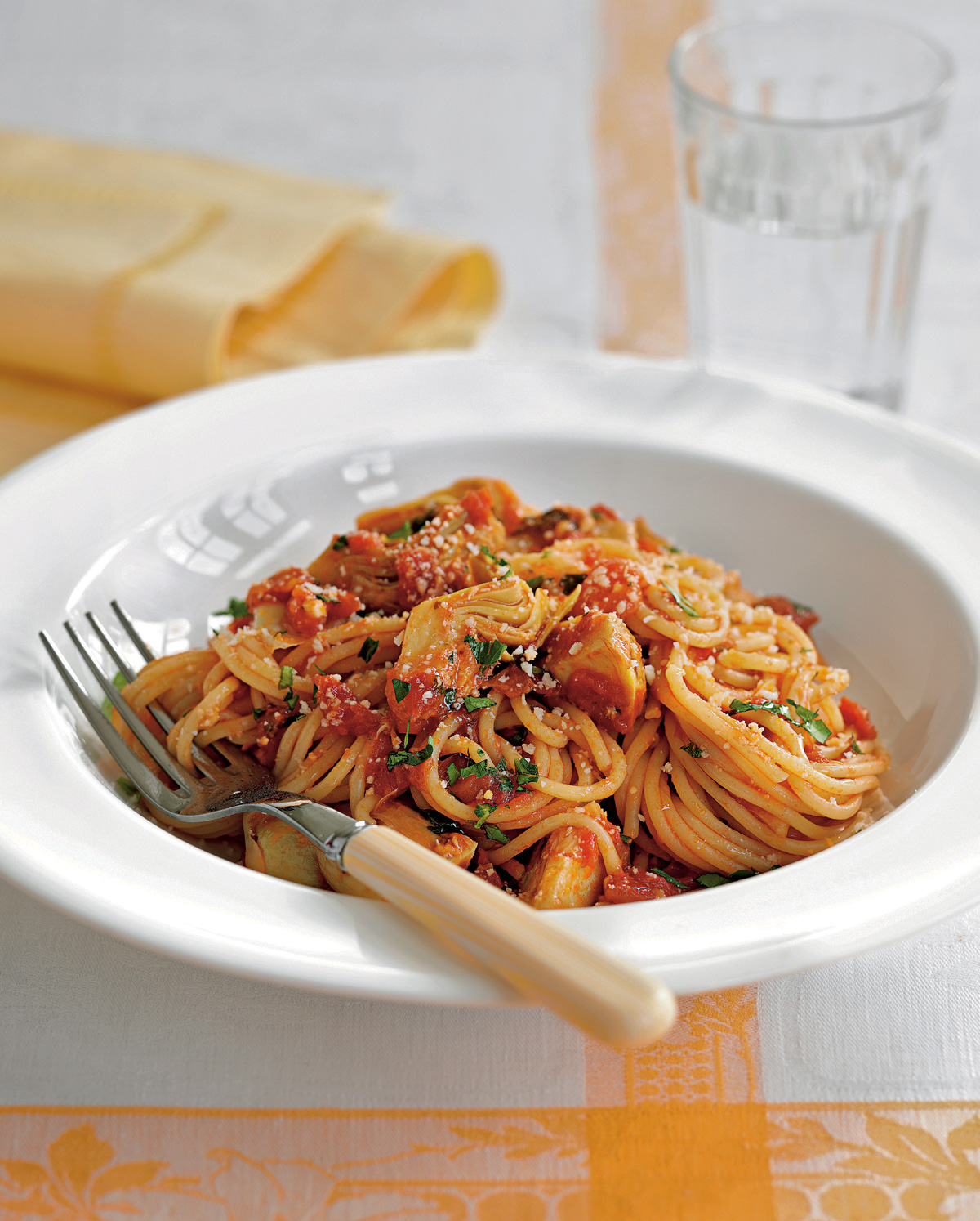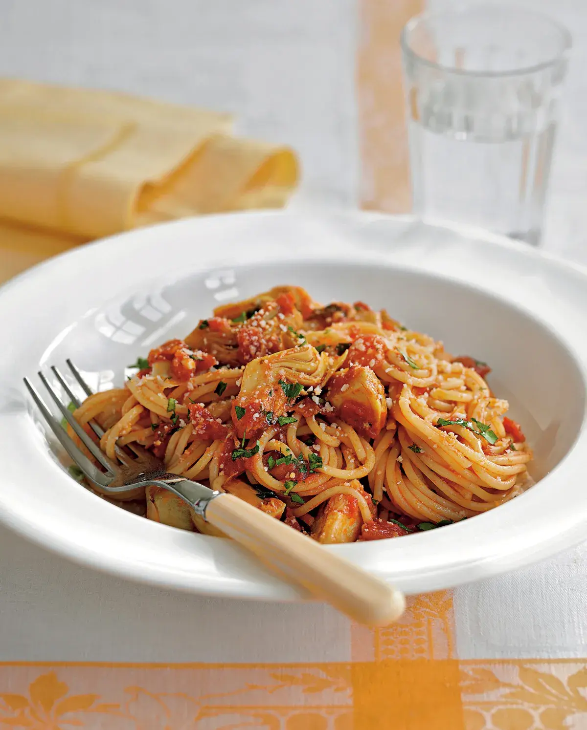 Vychutnejte si snadné špagety v delikátní úpravě. Rychlé těstoviny bez masa a s rajčaty jsou ideální jídlo po náročném dni. Z pár základních surovin, které má většina z vás doma a pokud ne, jistě je seženete v nejbližší večerce po cestě domů. Rychlé špagety k večeři zaženou hlad a ještě si pochutnáte.