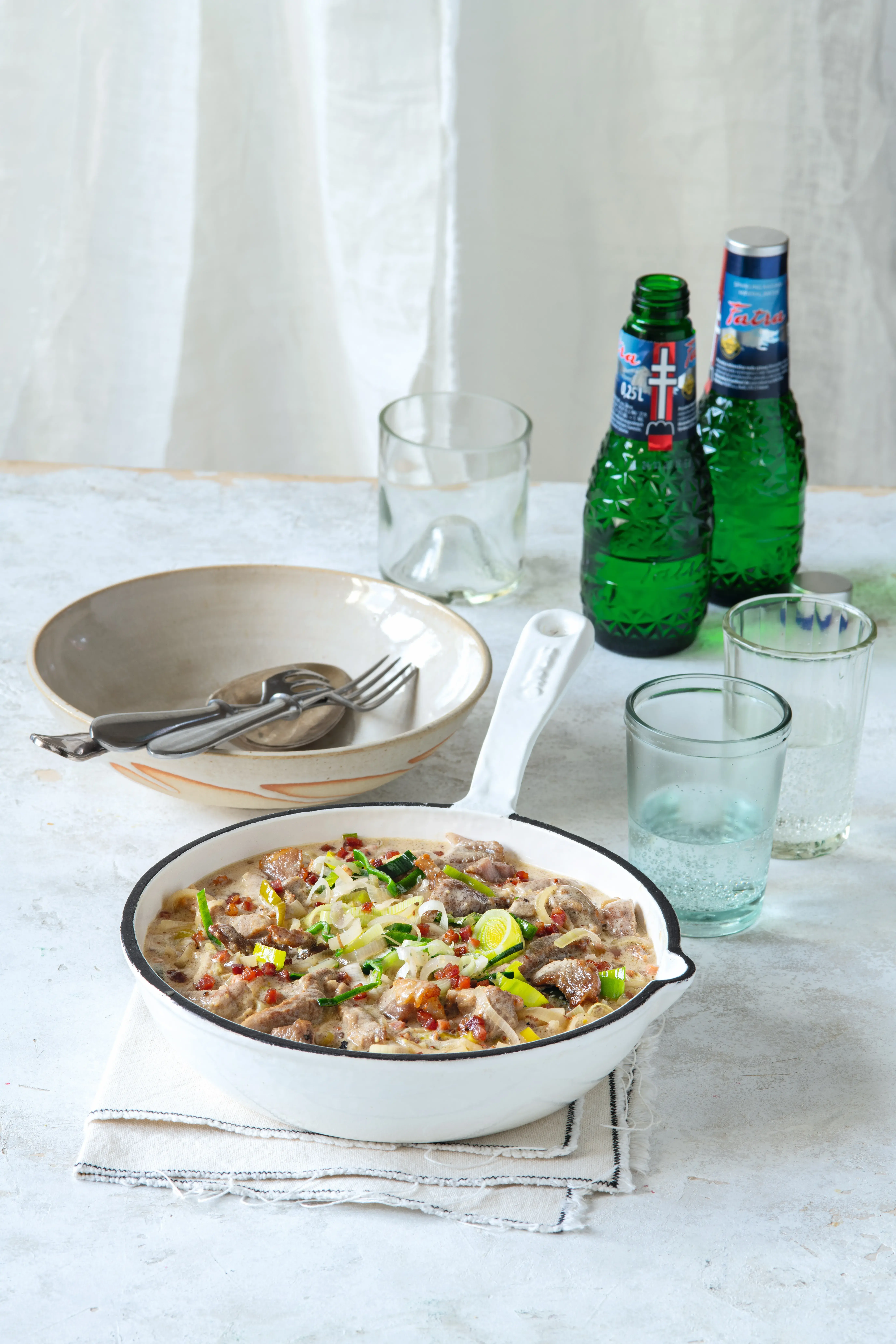 Tohle vepřové ragú s ciderem a pórkem je ideální jídlo, když chcete něco dobrého, ale nemáte čas stát hodiny u plotny. Šťavnaté maso, jemně nasládlý cider a voňavý pórek spolu vytvoří skvělou kombinaci, která se krásně spojí během pár minut. Rychlé, jednoduché a neuvěřitelně dobré!