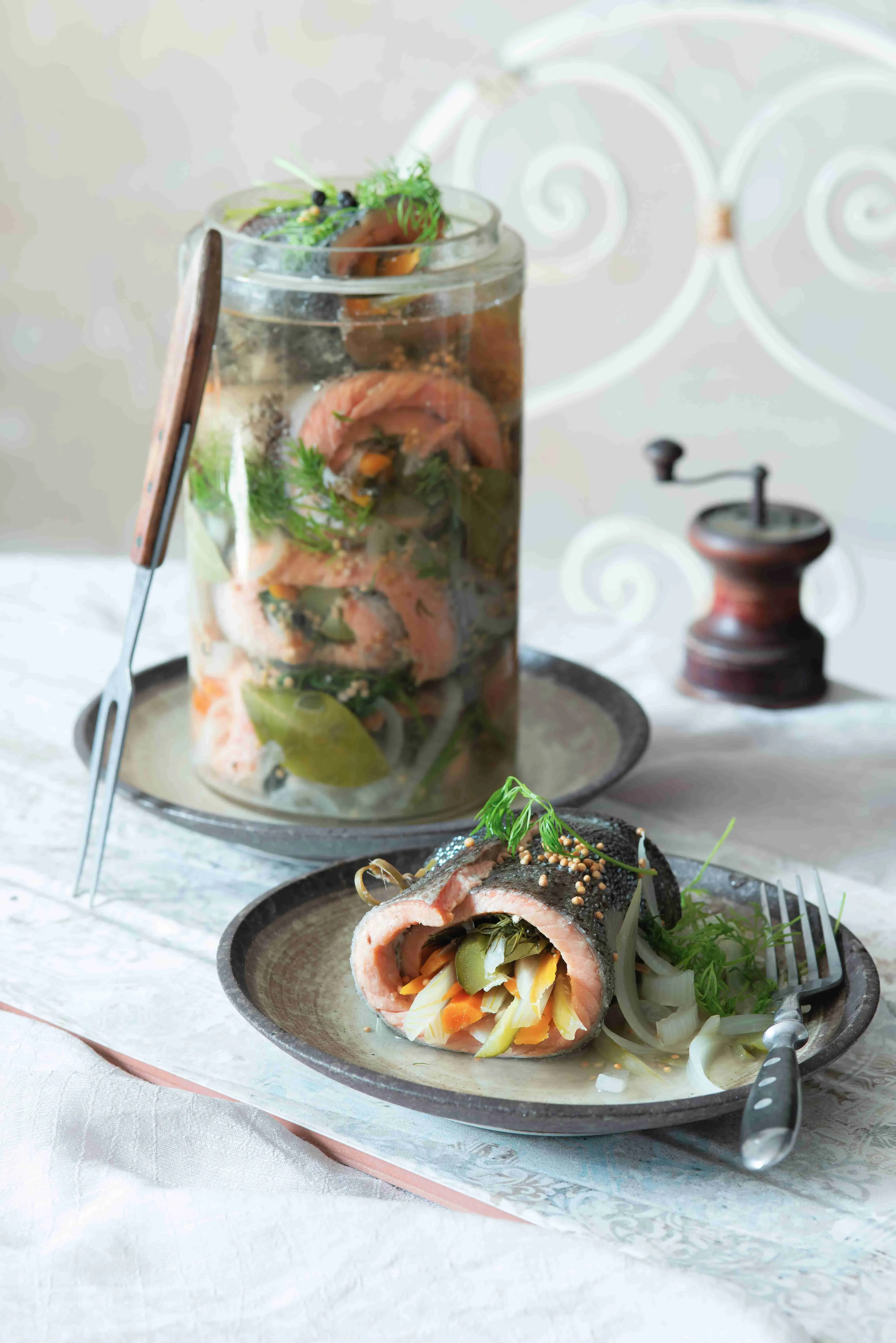 Pstruh lososovitý je obchodní název pro pstruha duhového, jehož maso získalo díky speciálnímu krmivu růžovou barvu. Použít ale samozřejmě můžete i filety z jakéhokoli jiného pstruha či sivena.