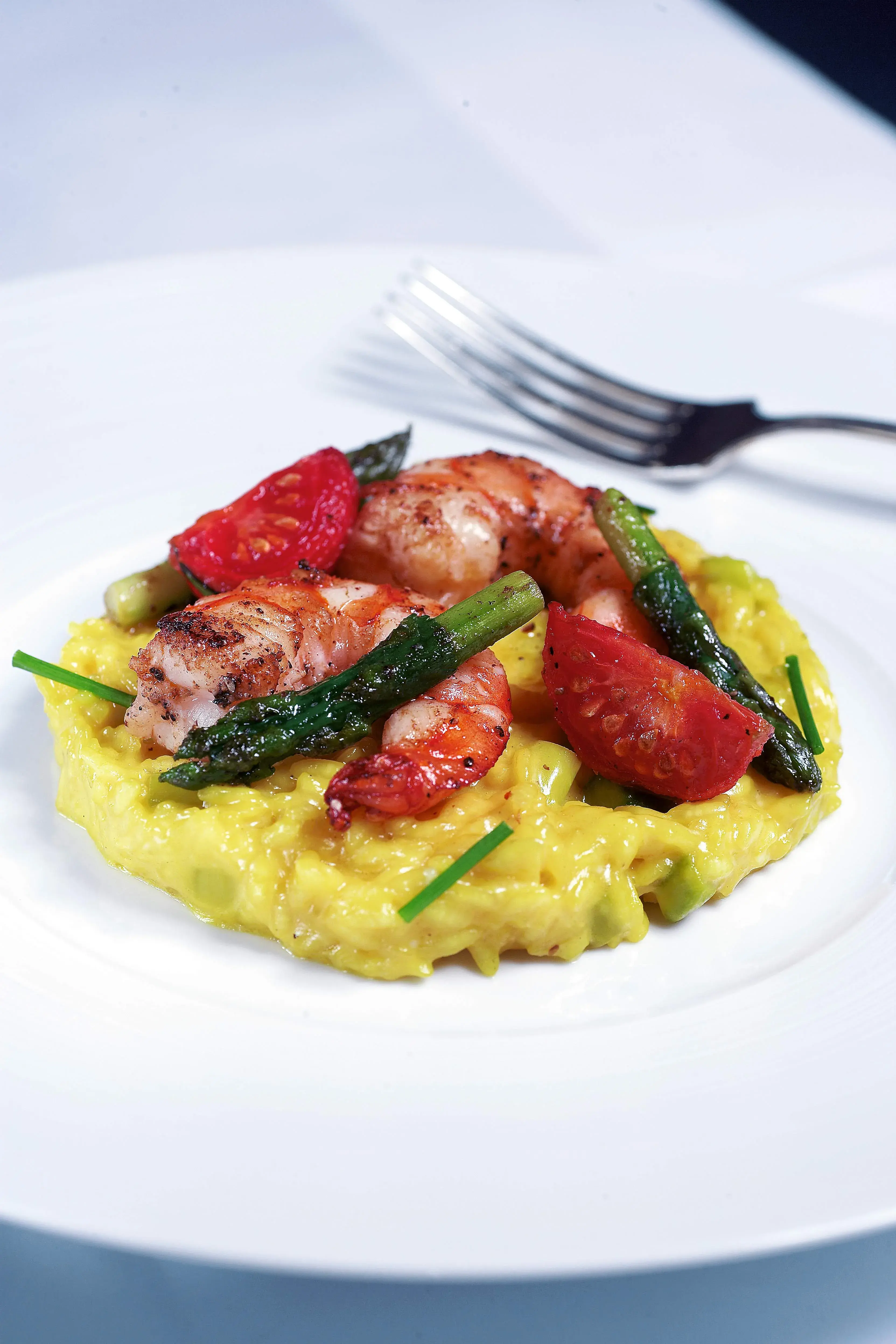 Základem krémového italského ,risotta‘ je kulatozrnná rýže s velkým množstvím škrobu, právě díky ní získá jemnou konzistenci. Šafrán se zase postará o nezaměnitelnou barvu a vůni. Krevety dodají středomořský nádech.