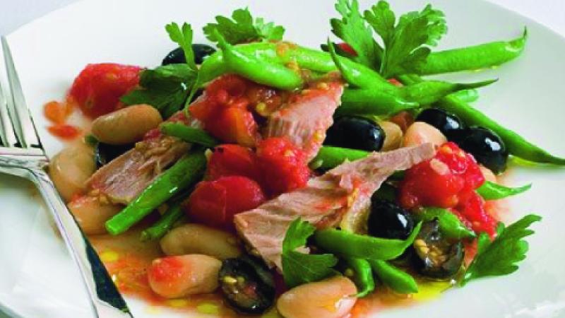 K létu samozřejmě patří saláty. Smíchejte tuňáka, fazolky a bylinky a máte hotovou večeři.
