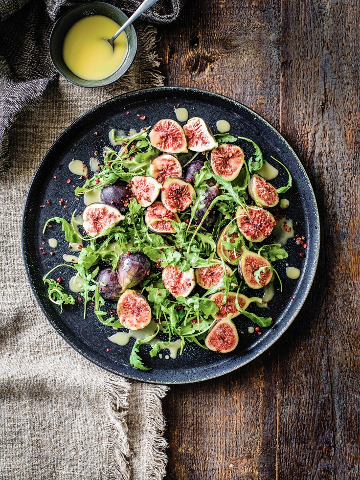 Sýr parmazánového typu má v zálivce skvělý efekt, dodá jí hutnost a příjemnou texturu a zároveň je vítaným kontrastem k nasládlým fíkům.
