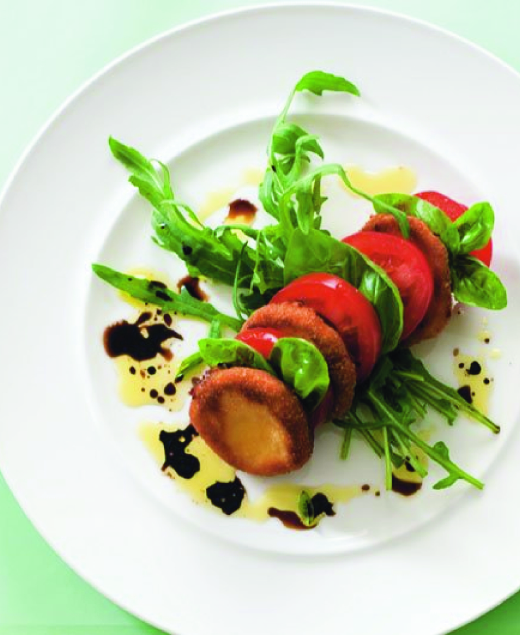 Výborný předkrm na letní oslavu. Pokud koupíte čerstvý kozí sýr, radši ho v trojobalu obalte dvakrát. Zpevní se tím a při smažení nevyteče.