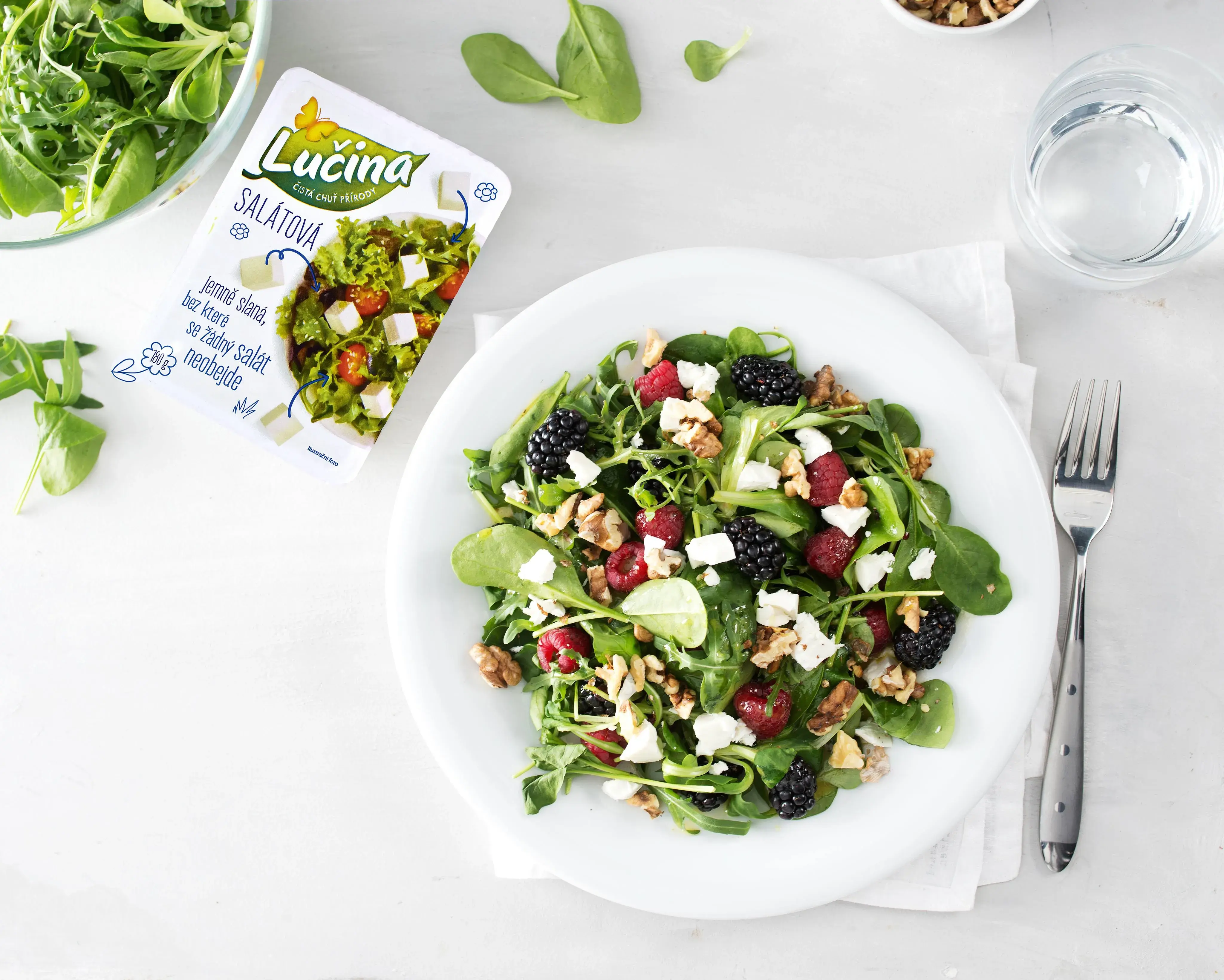 V létě je salát jednoduše nejvděčnější jídlo. Svěží, lehké, variabilní a bleskově připravené... Značka ideál! Uvidíte, že tenhle salát s lesním ovocem, pekanovými ořechy a Lučinou budete v sezoně s klidným srdcem připravovat i vícekrát týdně!