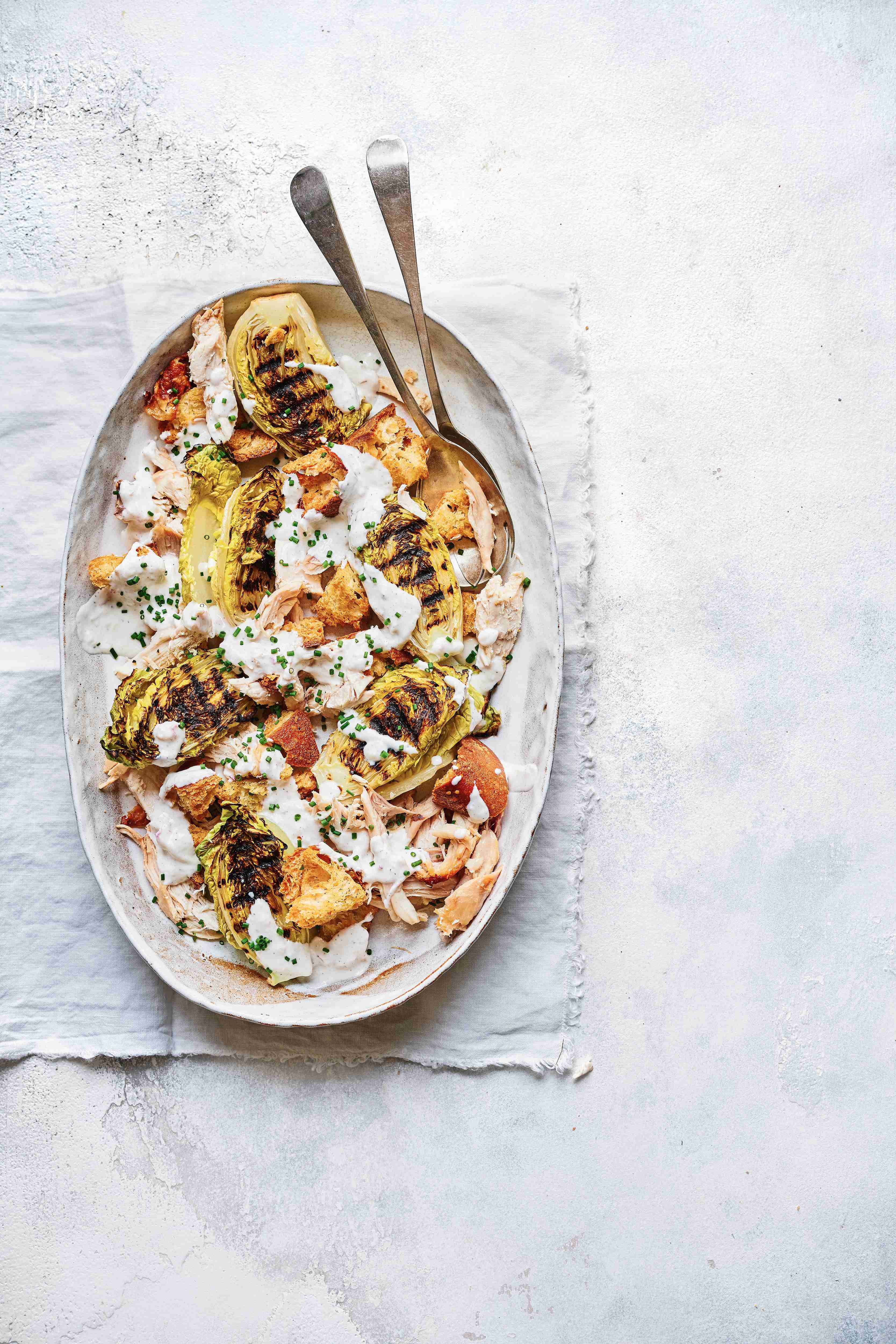 Kombinace teplého kuřecího masa, grilovaného salátu a pikantního jogurtového dresinku je prostě neodolatelná!