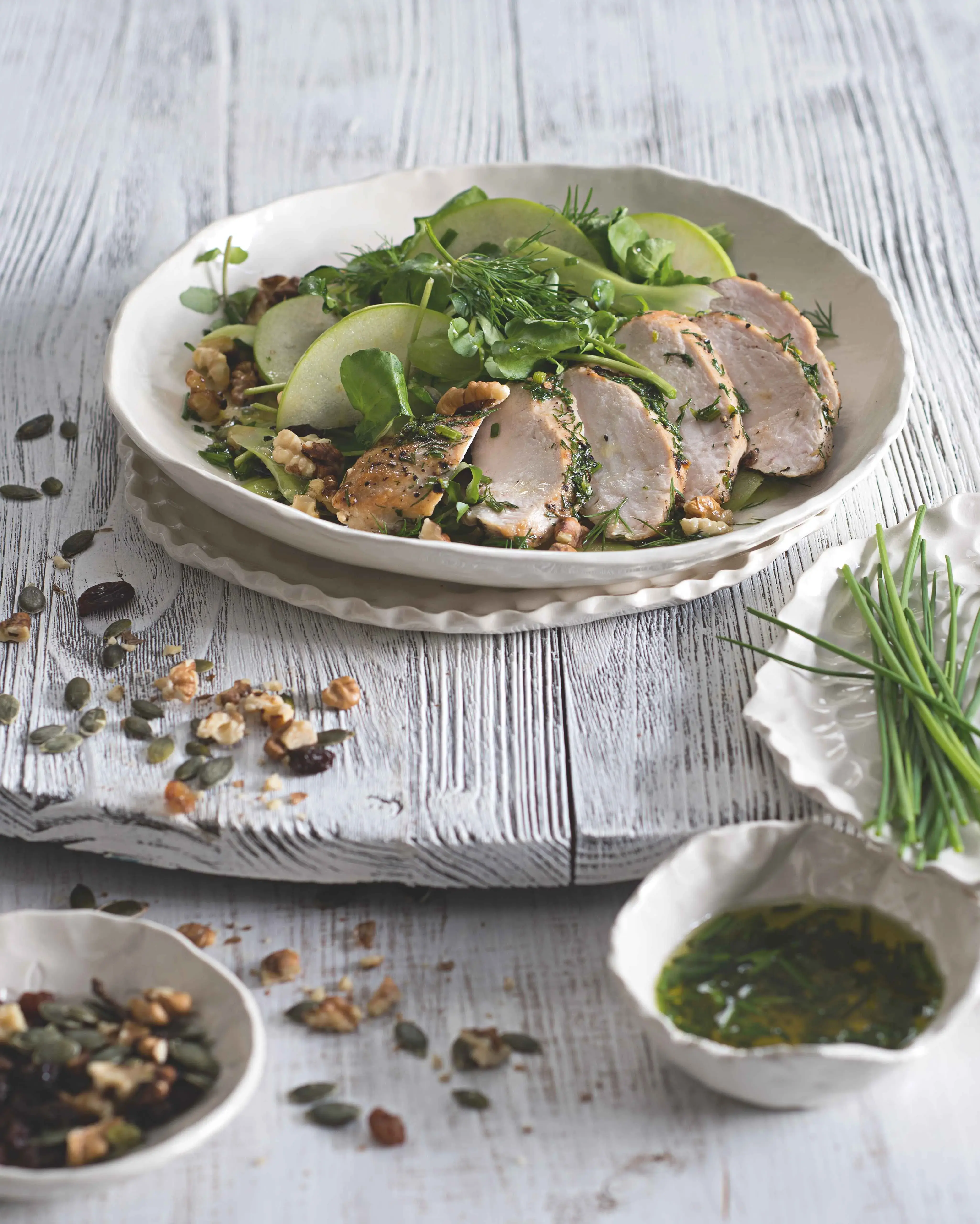 Zázračný salát! Jablka svědčí trávení, srdci, plicím a snižují riziko rakoviny a cukrovky. Nejcennější jsou v nich pektiny a polyfenoly. Ve slupce či těsně pod ní se skrývá mnoho dobrého, ale také na ní ulpívá případná chemie... Vlašské ořechy jsou zase plné vitaminu E, mohou tedy chránit před mozkovými a srdečními příhodami. Jsou rovněž velmi bohaté na omega-3 mastné kyseliny. Příznivě ovlivňují psychiku.
