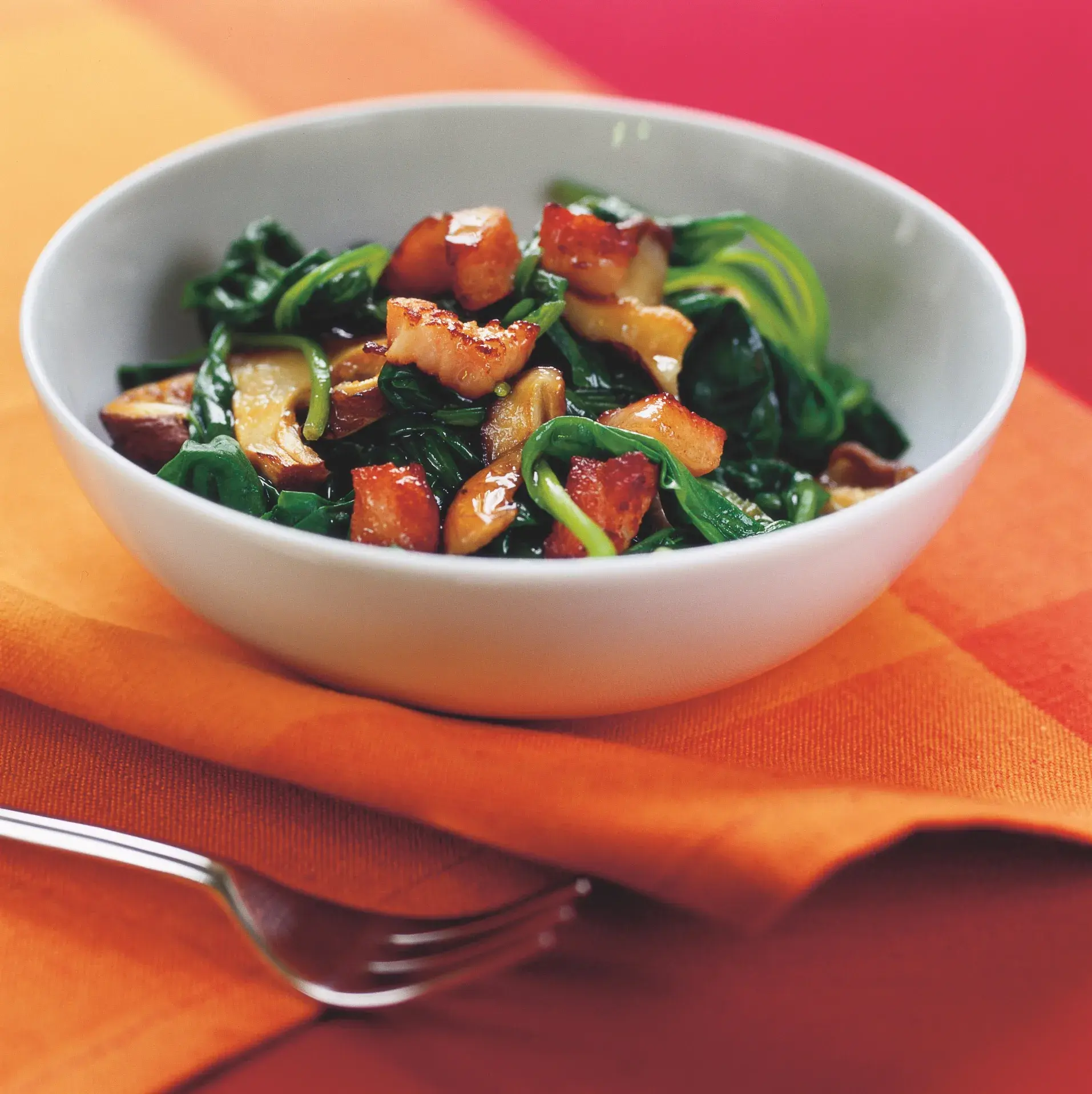Vláčné lístky, pevné houby a vlahá, pikantně křupavá zálivka vytvoří podivuhodný kontrast. Zálivku jsme si vypůjčili z Valašska, kde se odedávna používá na salát z čerstvého zelí.
