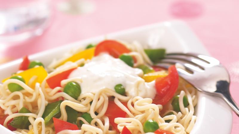 Ráno je moc krátké a hektické na to, abyste stihli ještě uvařit těstoviny na salát. Sáhněte proto po instantních nudlích, které jsou připravené za pár minut. Tohle jednoduché, lehké a přitom výživné jídlo můžete dětem svěřit bez sebemenšího zaváhání! Celá akce bude ještě dobrodružnější, když jim nachystáte k salátu místo příboru jídelní hůlky.