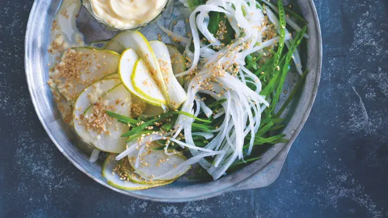 Ostrá ředkev, křupavý hrášek a sladká hruška se jemně prolínají a tvoří spolu dokonalou harmonii.
