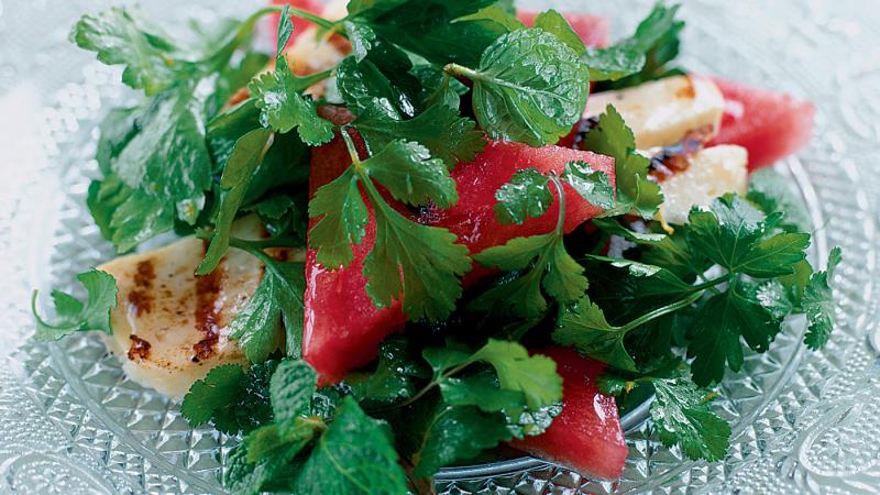 Se spojením různých druhů sýrů a melounů se často setkáte na jihu Evropy, stejně jako s vůní máty. Pružný sýr halumi je řeckou specialitou.