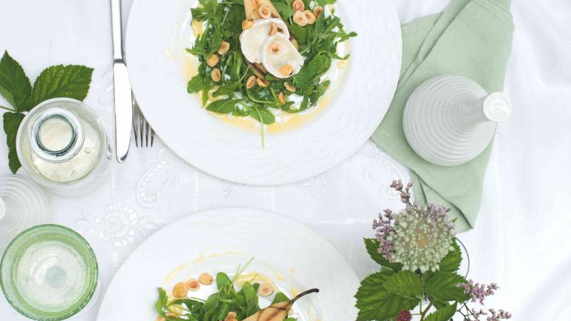 Svěží salát s lehkostí kombinuje ověřené suroviny - hrušky, med, kozí sýr a ořechy. Opravdová lahůdka!