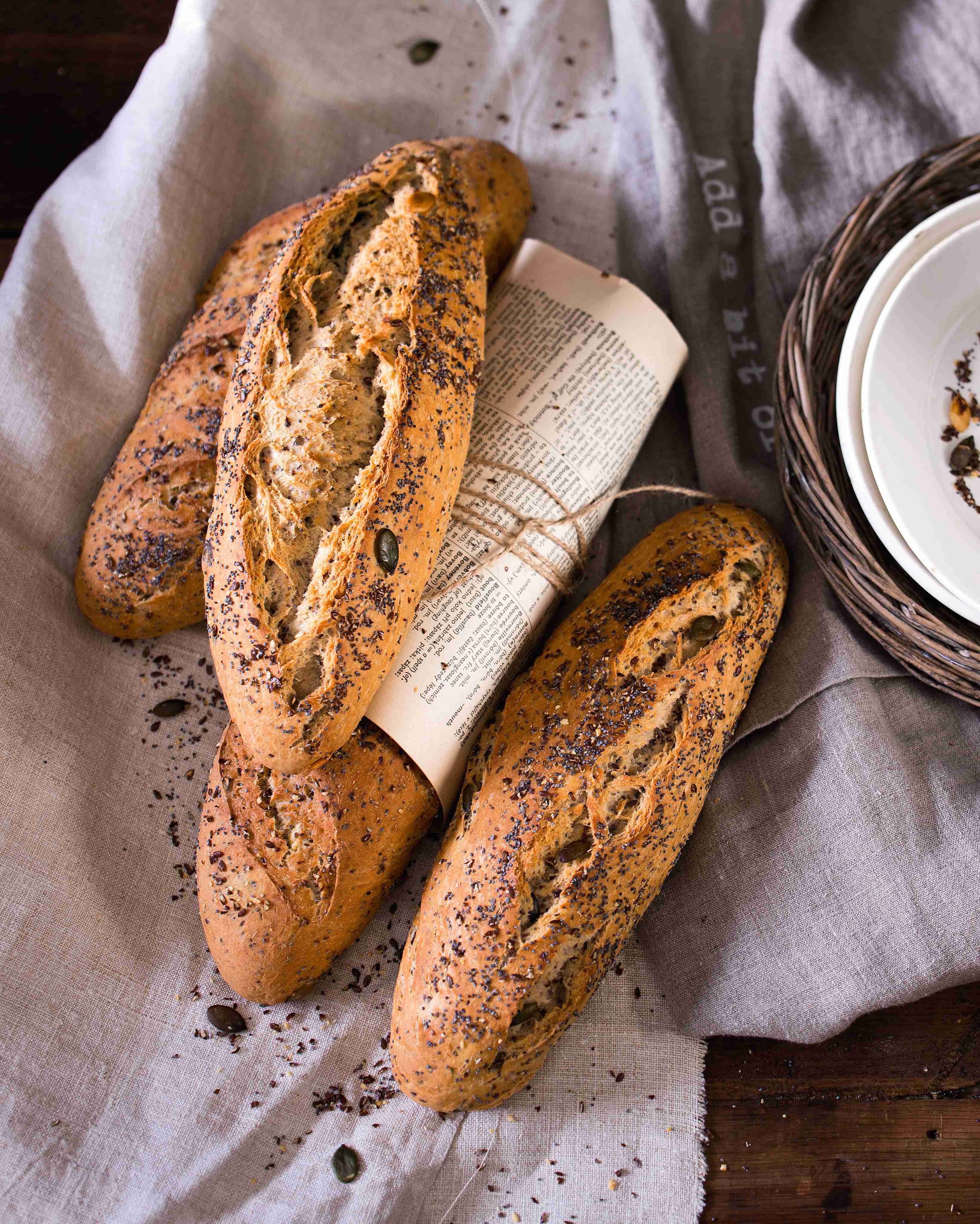 Inspirovali jsme se receptem z blogu Nuselská kuchta, jen jsme v něm kvásek nahradili droždím. Díky předkvašenému těstu bagety vydrží vláčné až 3 dny.
