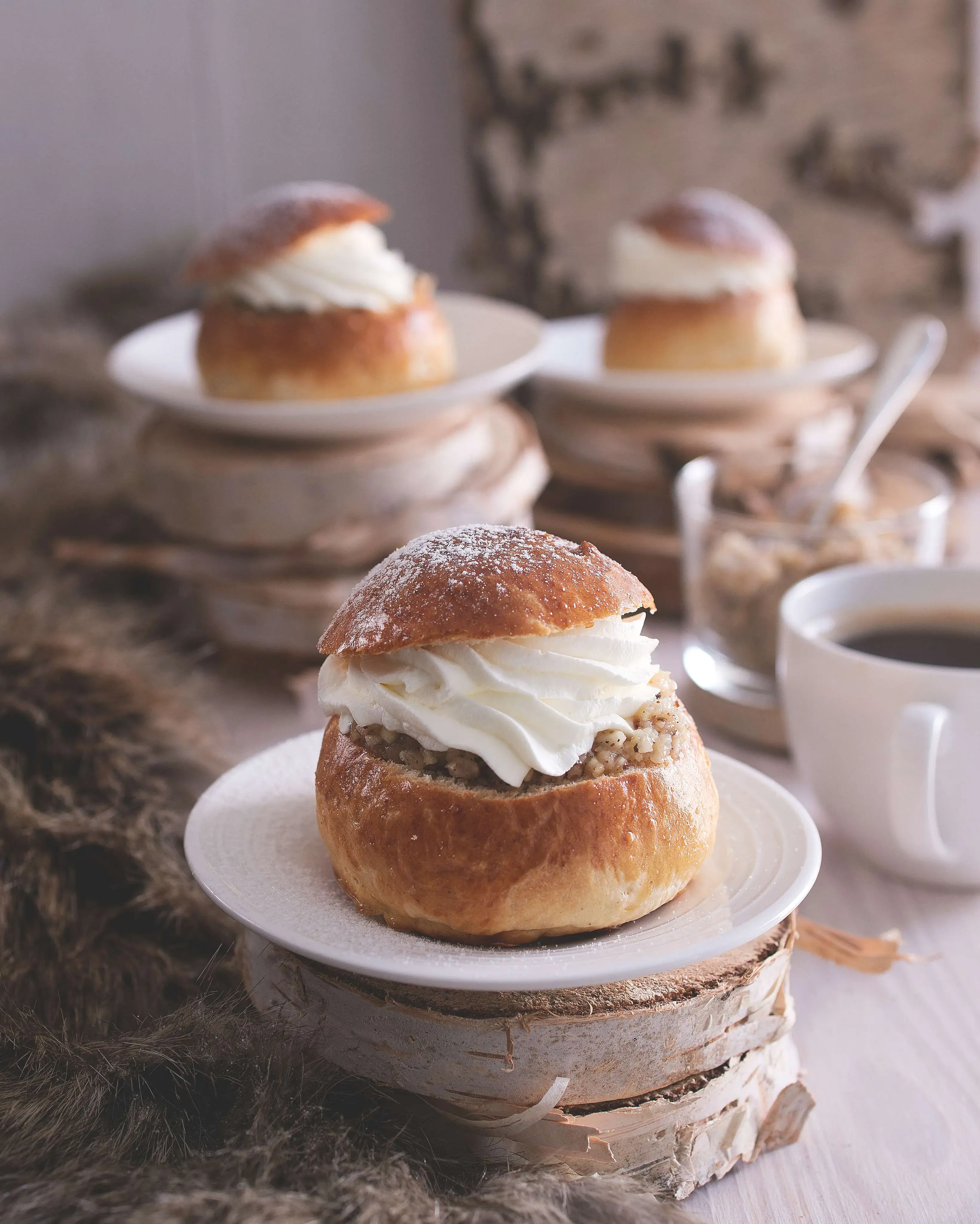 Švédské předvelikonoční kynuté houstičky provoněné kardamomem a naplněné oříškovým krémem a šlehačkou se pečou na Tlusté úterý (úterý před Popeleční středou, které se ve Švédsku opravdu jmenuje "tlusté" a startuje jím půst). Dříve se pekly jenom každé postní úterý, dnes se jedí bez ohledu na dny v týdnu už od ledna. Samy o sobě jsou hříšně dobré, ale můžete je zkusit jíst jako praví Švédi: v misce zalité horkým mlékem. Slast!