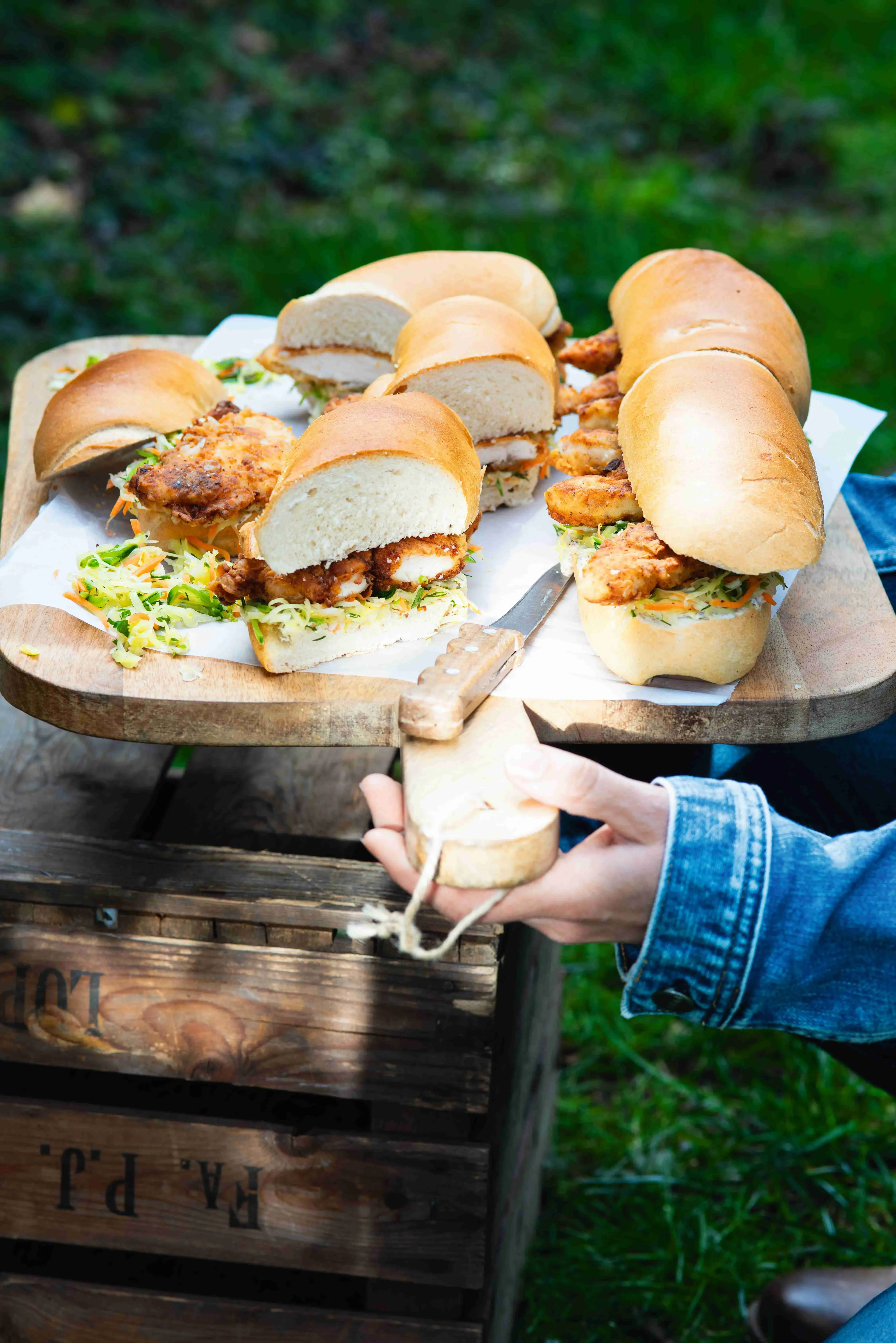 Když veku obložíte vychladlými kuřecími stripsy, vydrží dobře zabalená v chladu do druhého dne. Anebo si ji pak můžete odnést s sebou dál než na zápraží či na zahradu. Tenhle sendvič rozhodně oceníte na pikniku i na výletě.
