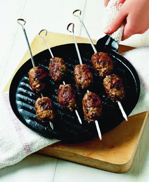 K téhle úpravě se hodí tučnější mleté skopové, které líp drží pohromadě. Podávejte s kořeněnými chlebovými plackami, jogurtem nebo tzatziki.