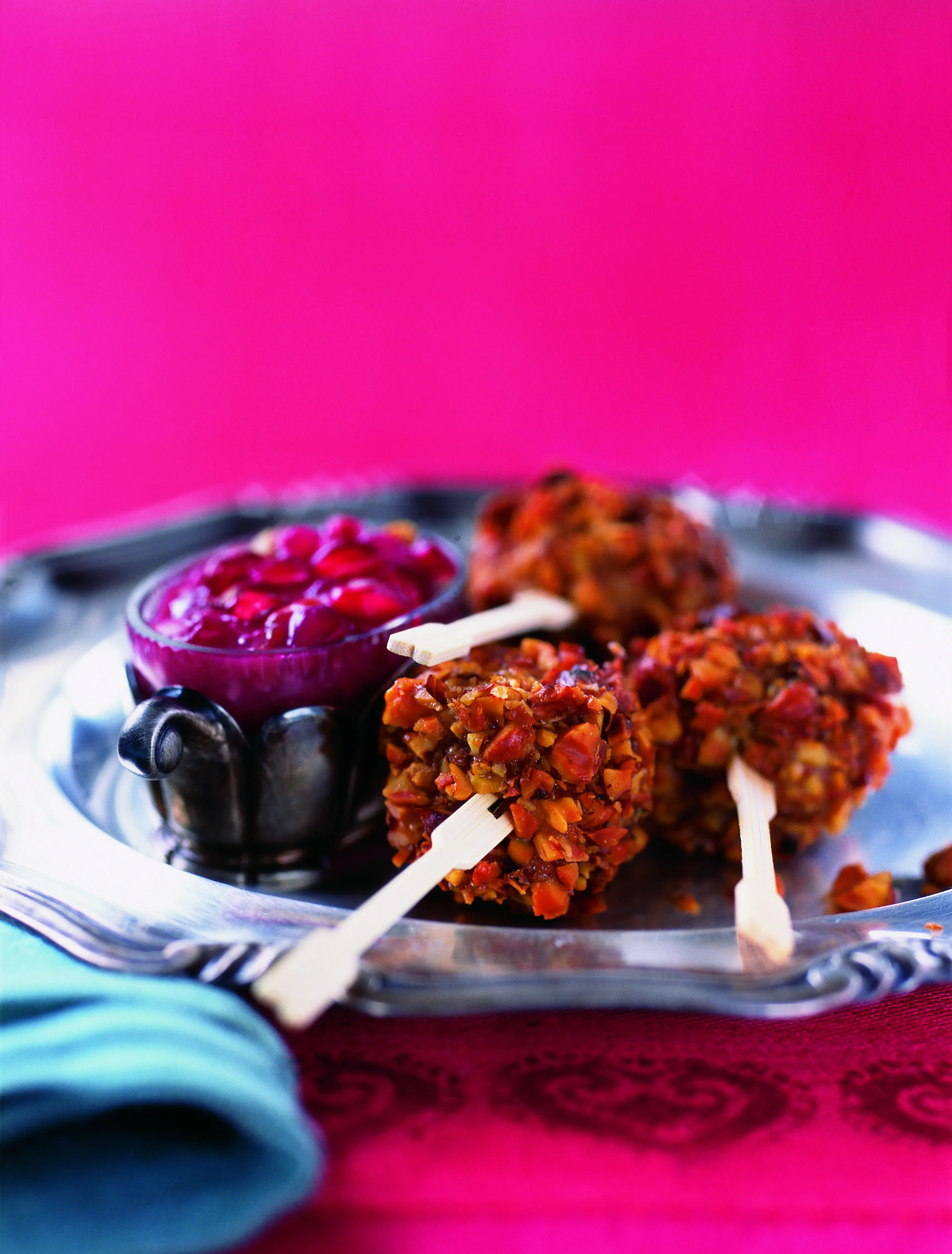 Tohle je recept z rodu labužnických! Jemné a křehké kuřecí maso skvěle vynikne v obalu z drcených vlašských ořechů. Pikantní omáčka nebo zavařenina z ovoce a koření je inspirována indickým čatní a povýší celé jídlo na dokonalou symfonii.