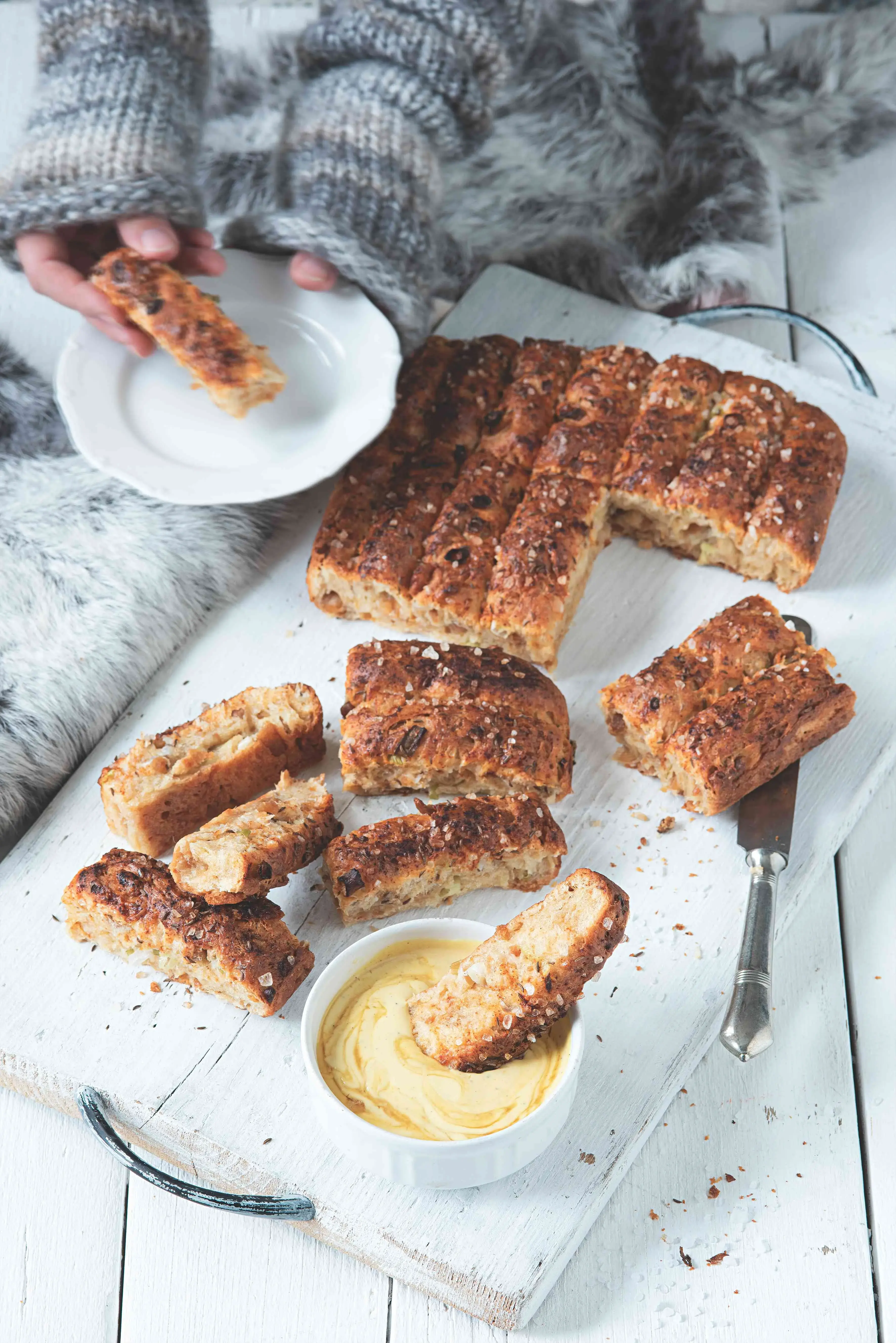 Kdysi se se sádlem a škvarky v mnohem větší míře než dnes peklo i nasladko. My jsme se ale rozhodli sladkým tónem dipu doplnit slané pečivo.