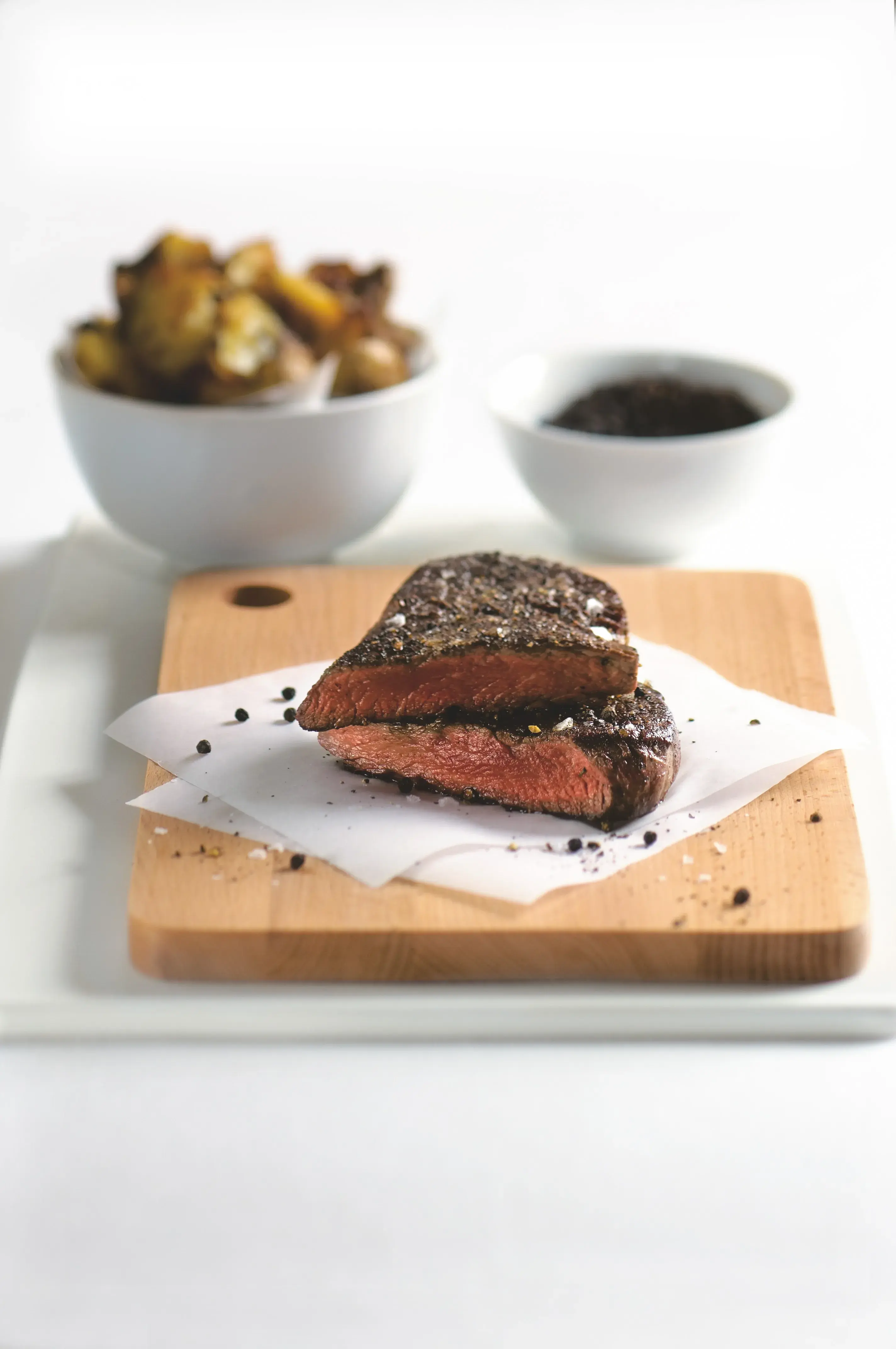 Cesta ke šťavnatému hovězímu steaku je jednoduchá – k úspěchu vede jedno jediné otočení kleští. Tento skvělý steak s pečenými bramborami je nezapomenutelná dobrota hotová za pár minut.