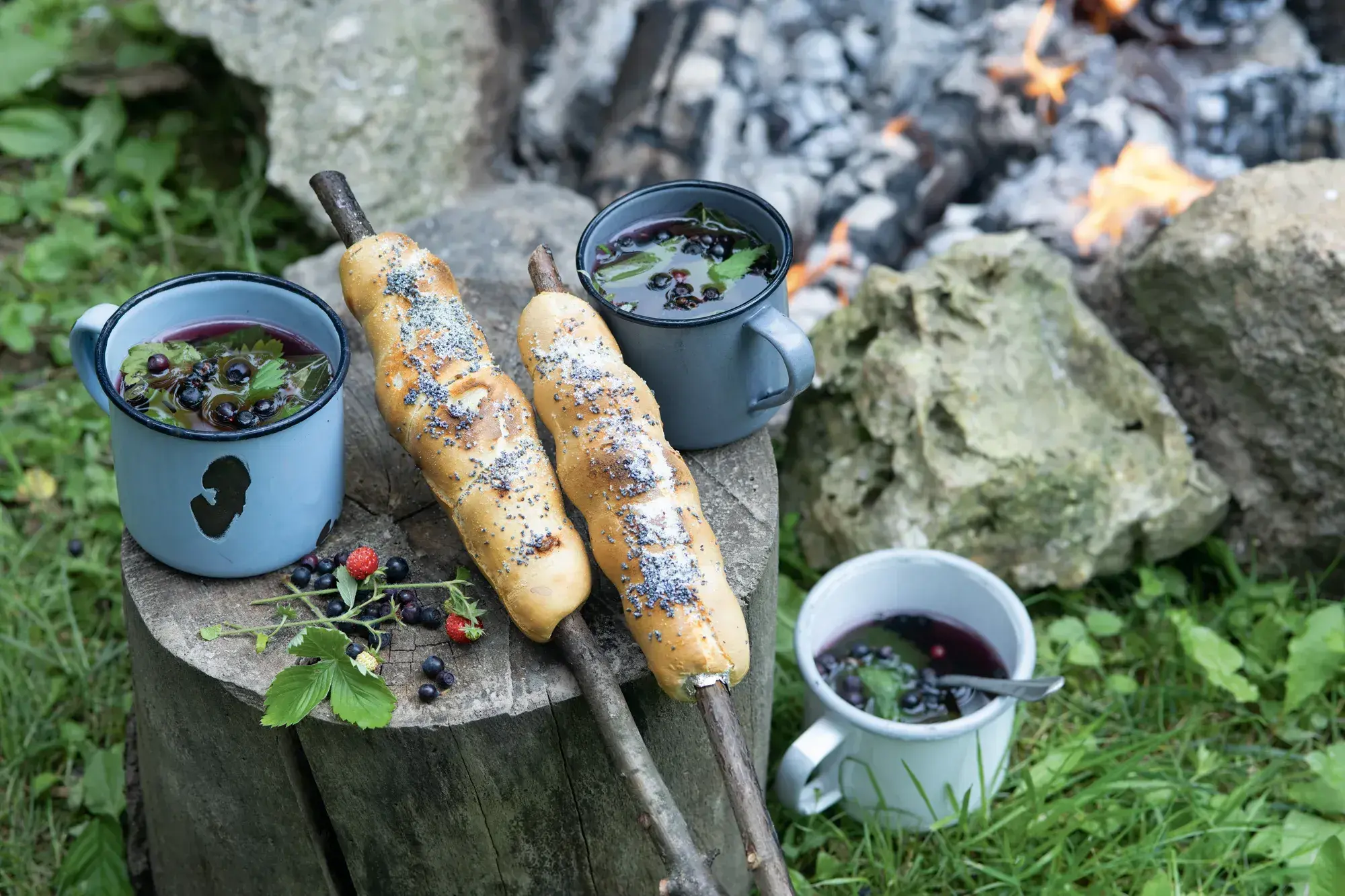 Vaření v přírodě si nežádá mnoho – pouze rychlý recept z pár surovin a případně znalost divokého býlí. Kombinace sladkých hadů a bylinkového čaje může na výletě posloužit buď jako svačina nebo coby dezert.