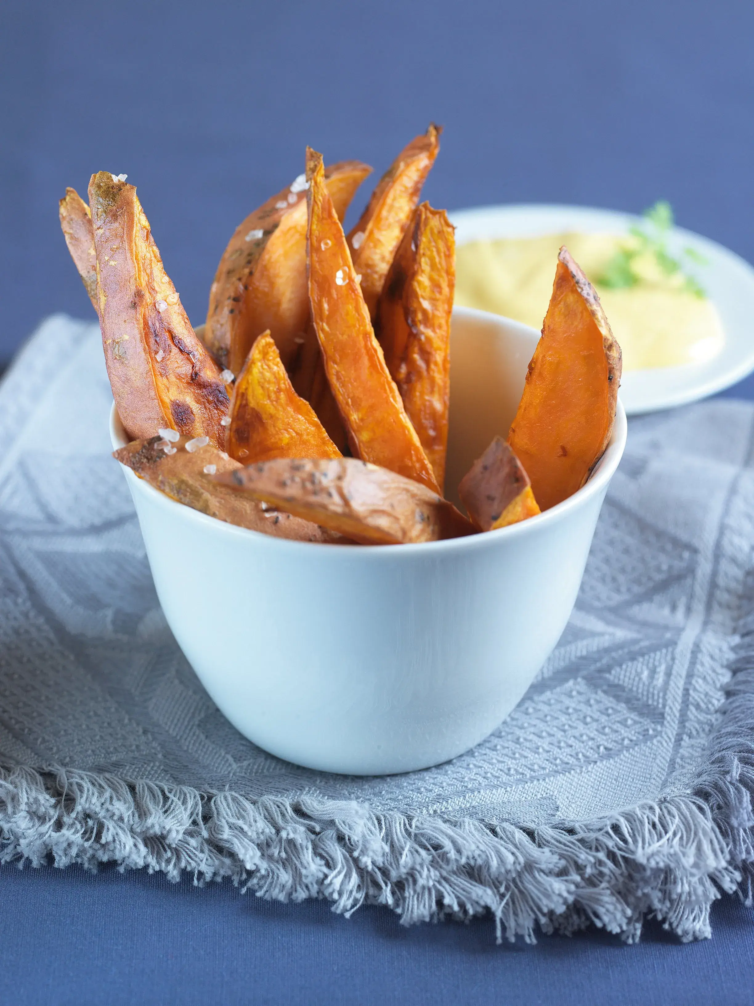Dužina sladkých brambor zůstává při smažení pevná, ale zároveň vláčná. Chuť skvěle odpíchne ostřejší dip. Batátové hranolky můžete s přehledem servírovat jako přílohu k masu, ovšem ještě lépe jako křupavý snack s dipem na párty, oslavy nebo malé pohoštění ke sledování televize.