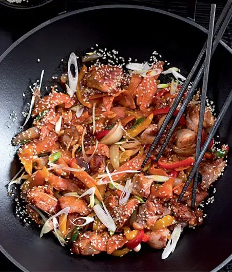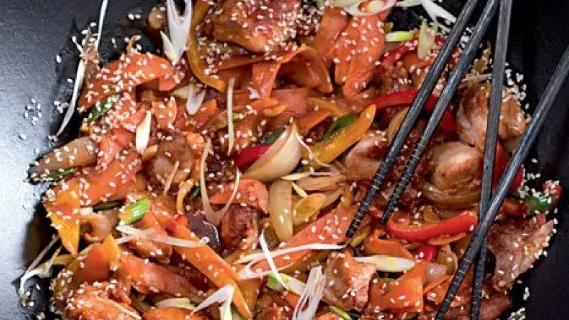 Měkoučké maso a křupavá zelenina v jedné pánvi.