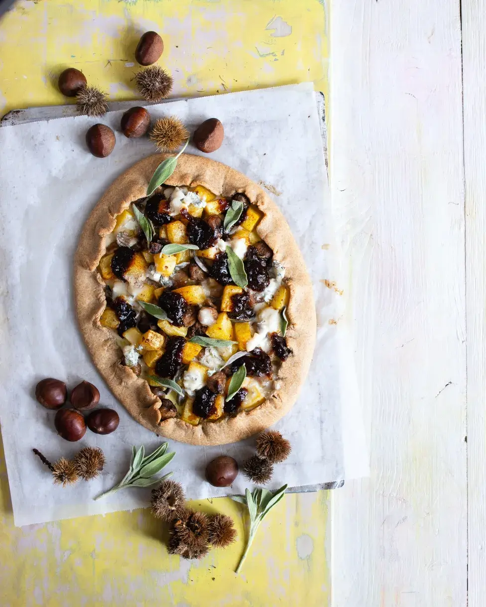 Slané galetky jsou stejně skvělé jako ty sladké. Spojuje je jednoduchá příprava, efektní rustikální vzhled a téměř nekonečná variabilita náplní. Tentokrát jsme vsadili na podzimní variantu plněnou dýní, jedlými kaštany a modrým sýrem. Skvělou tečkou na závěr je potom cibulové čatní.
