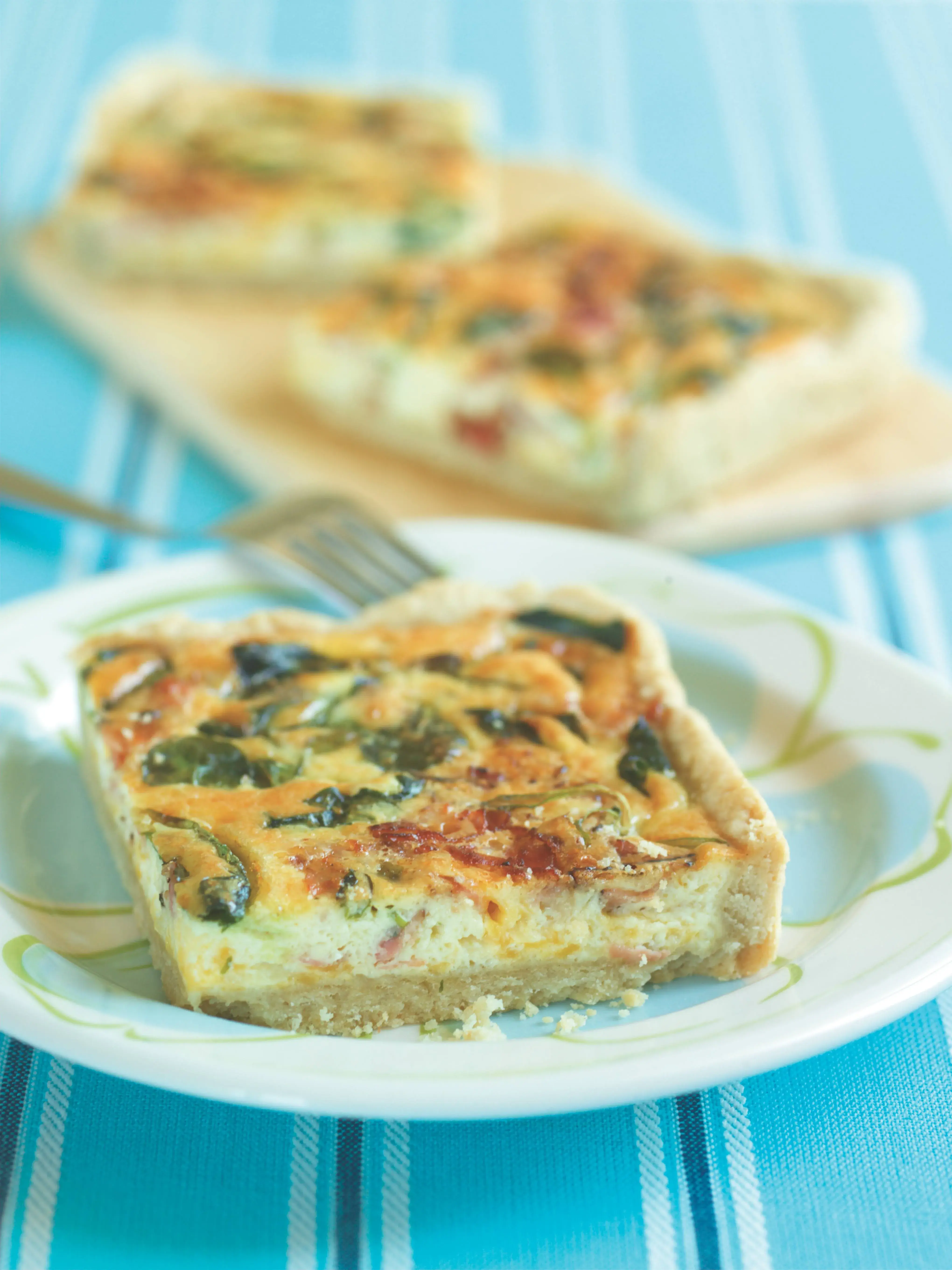 Slané koláče po vzoru lotrinského quiche jsou v létě velmi vítány! V jemné sýrové náplni polníček skvěle vynikne.