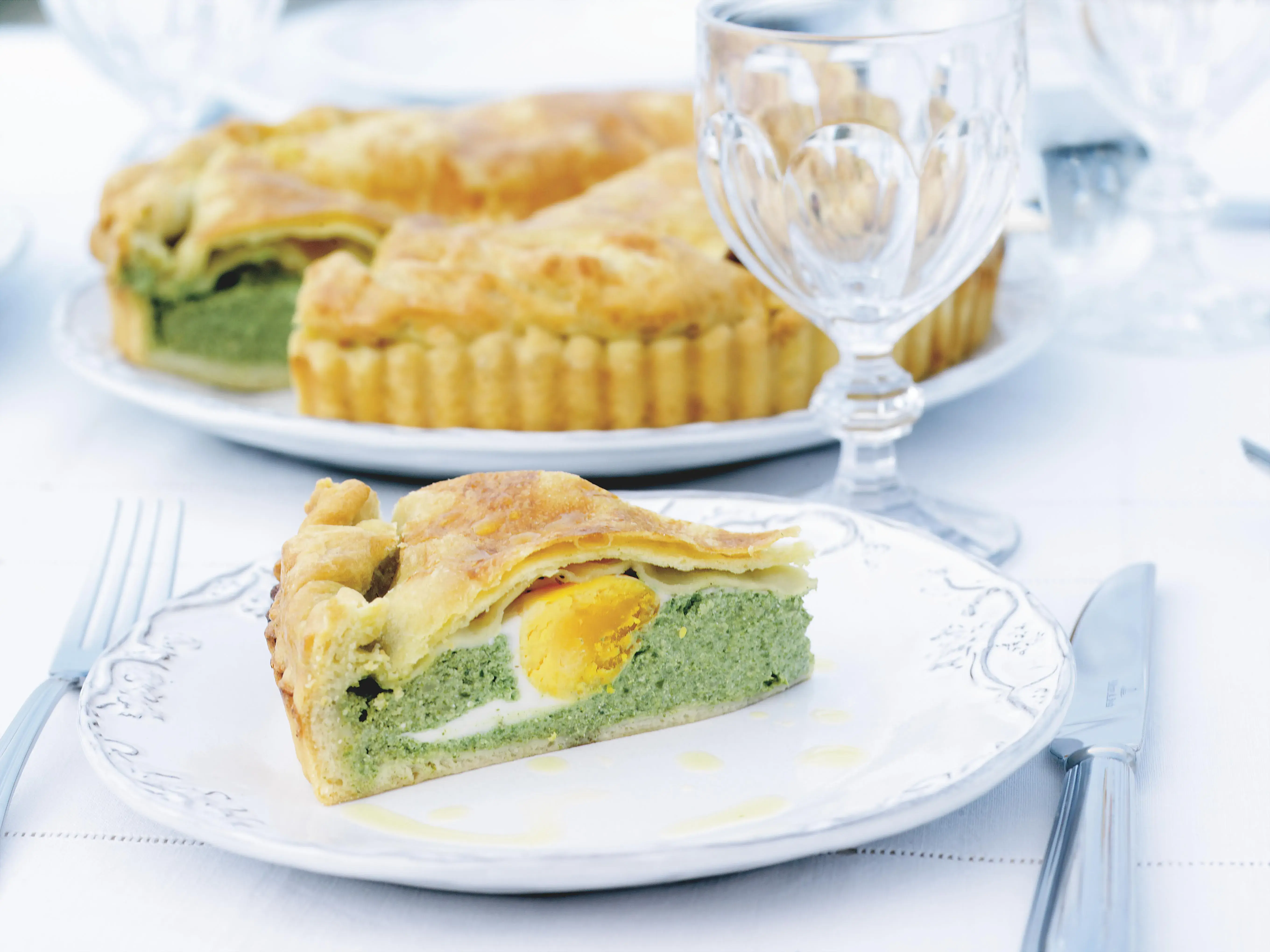 Koláč je díky svěží, lehké chuti ideální pro letní stolování na čerstvém vzduchu. Dá se připravit předem – a chutná stejně skvěle teplý i studený.