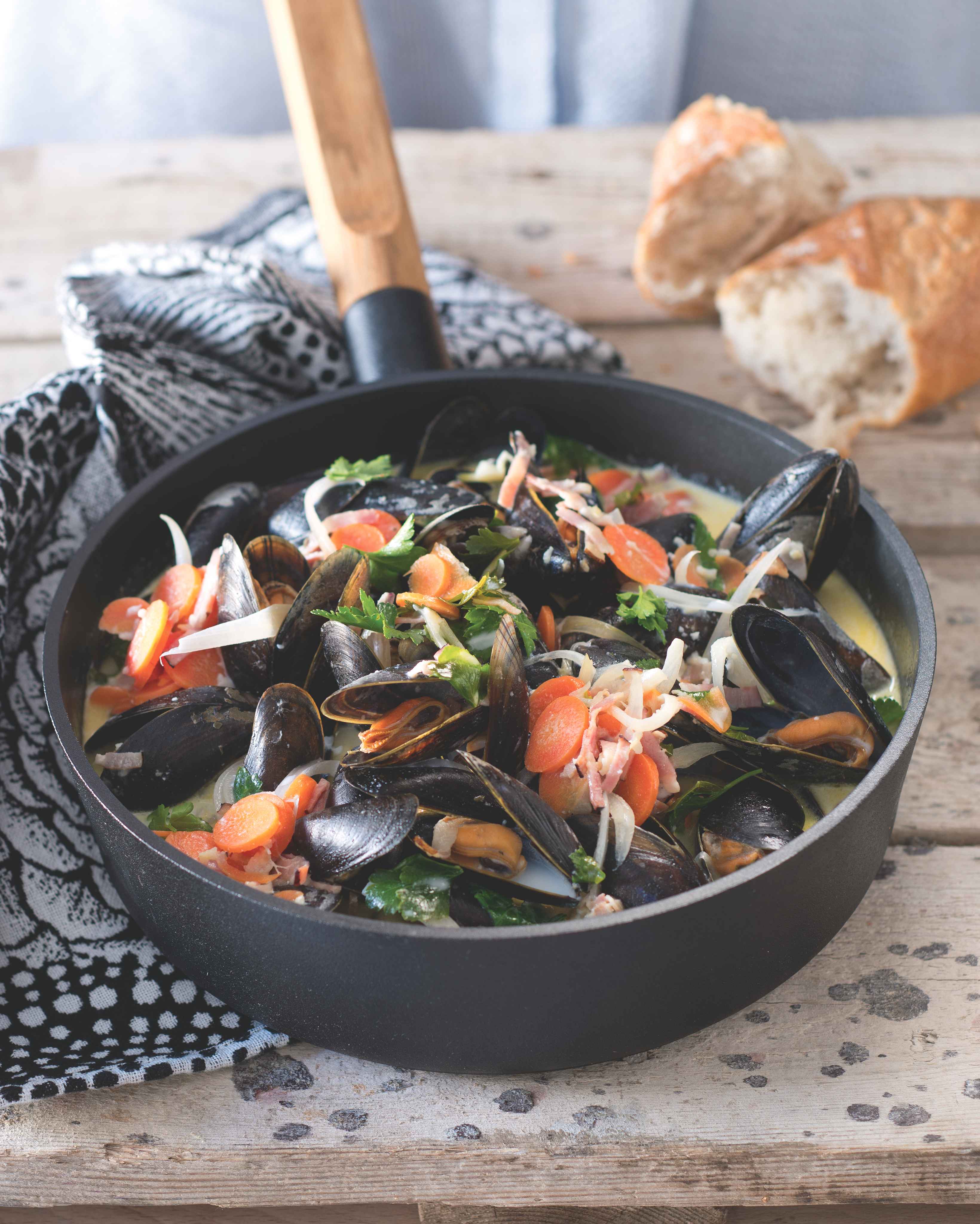 Opravdová delikatesa, a navíc hotová raz dva! Tato úprava na světlém pivu je hutnější než francouzská klasika s bílým vínem. Mušle podávejte nejlépe s hranolky a majonézou, stejně jako to dělají v Belgii.