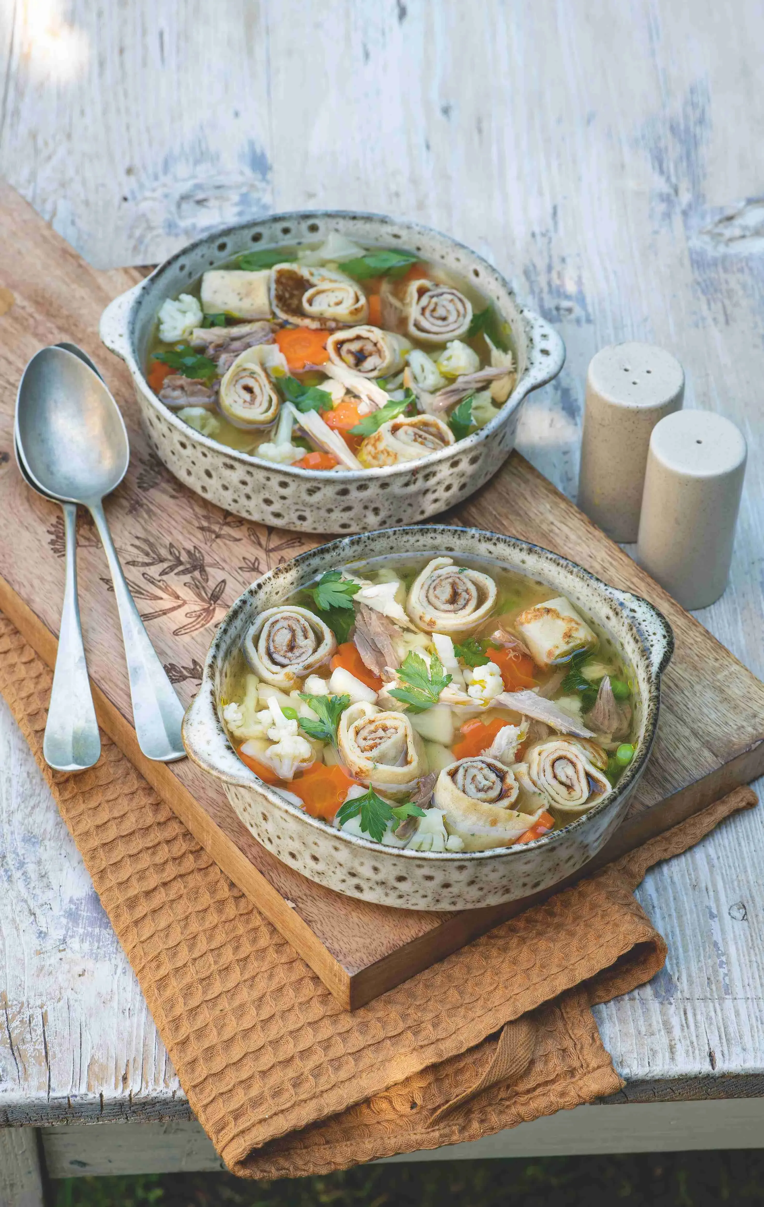 Poctivá slepičí polévka s celestýnskými nudlemi se bude ve vašem polévkovém repertoáru výjimat. Navíc ve vás možná vyvolá vzpomínky na obědy u babičky. Pokud máte možnost použít čerstvý libeček, rozhodně ho nevynechávejte, polévce totiž dodá neopakovatelné aroma.
