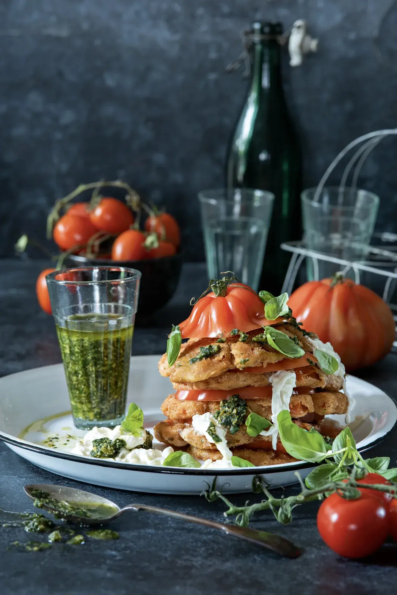 Netradiční úprava rajčat, kterou si zamilujete po prvním soustu! Strouhanka dodá to pravé křupnutí, pesto chuť a burrata vše nádherně zjemní. Může být něco dokonalejšího?