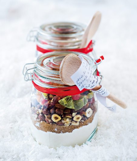 Nápad na instantní směs na muffiny jsme si prostě zamilovali. Kupovanou sklenici můžete ještě dozdobit stuhou a přivázat k ní visačku s receptem. Když k ní přidáte plech na pečení muffinů, darujete skvostný, ale i praktický dárek.