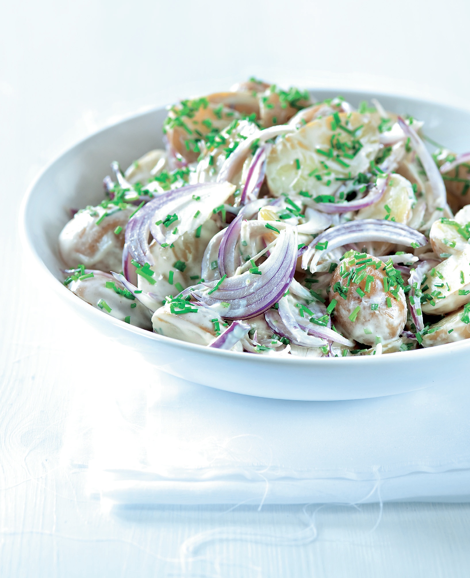 Pěkné nové brambory nemusíte loupat, stačí je umýt; jinak je oloupejte po uvaření.