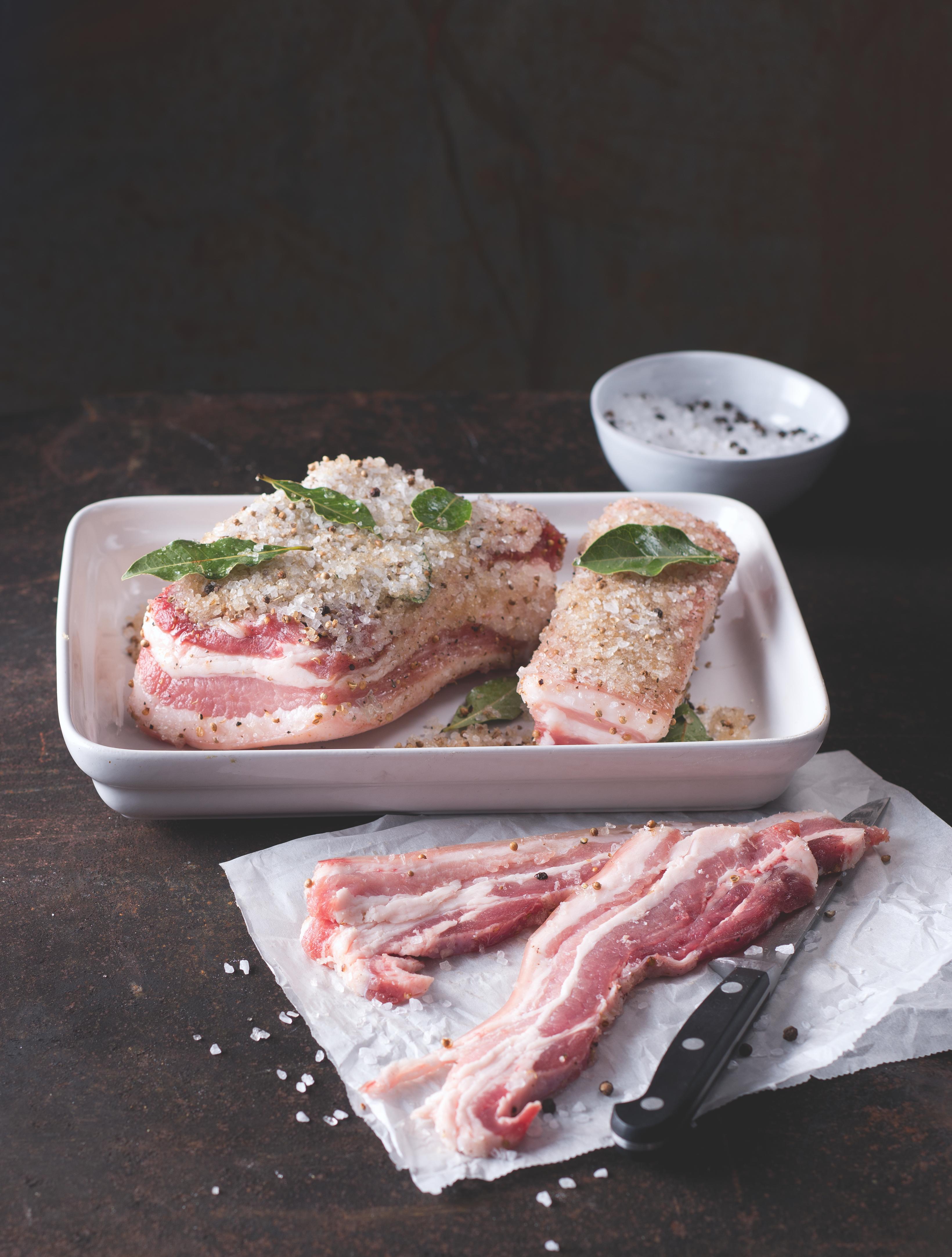 Tahle domácí slanina po dokončení připomíná pancettu. Neobsahuje žádnou chemii, konzervuje ji jen sůl, a proto je potřeba ji spotřebovat do týdne po dokončení. Je skvělá na vaření, stejně jako grilovaná do sendviče. Nebo ji můžete nakonec ještě vyudit (5 až 6 hodin studeným kouřem).