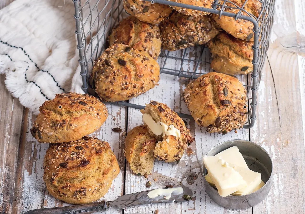 Nejjednodušší recept na semínkové bulky na světě! Ingredience jen smícháte dohromady a těsto pak uložíte k odpočinku do lednice. Na plech je odebíráte lžící z mísy – žádné hnětení, tvarování. Těsto na vás navíc v chladu počká i víc než jeden den.
