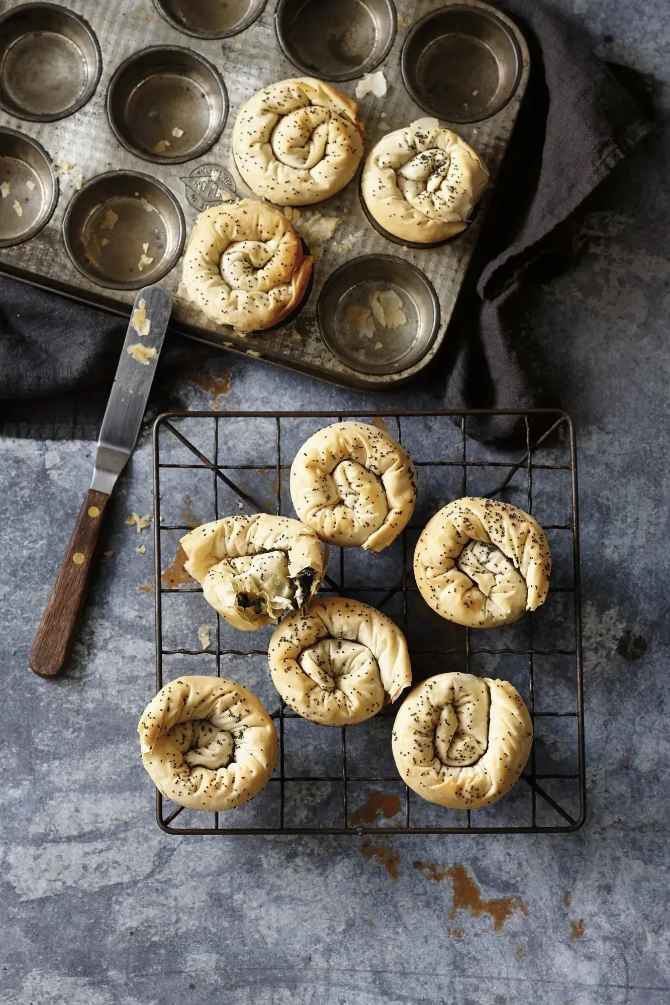 Šneci z filo těsta se špenátem a fetou vás nadchnou svou jednoduchou přípravou a také praktičností. Díky muffinové formě upečete každou porci zvlášť, čímž vám odpadá složité porcování. Každý si pak vezme jen svou porci. Šneci se hodí jako sytá svačina do školy, do práce nebo chuťovka k vínu.