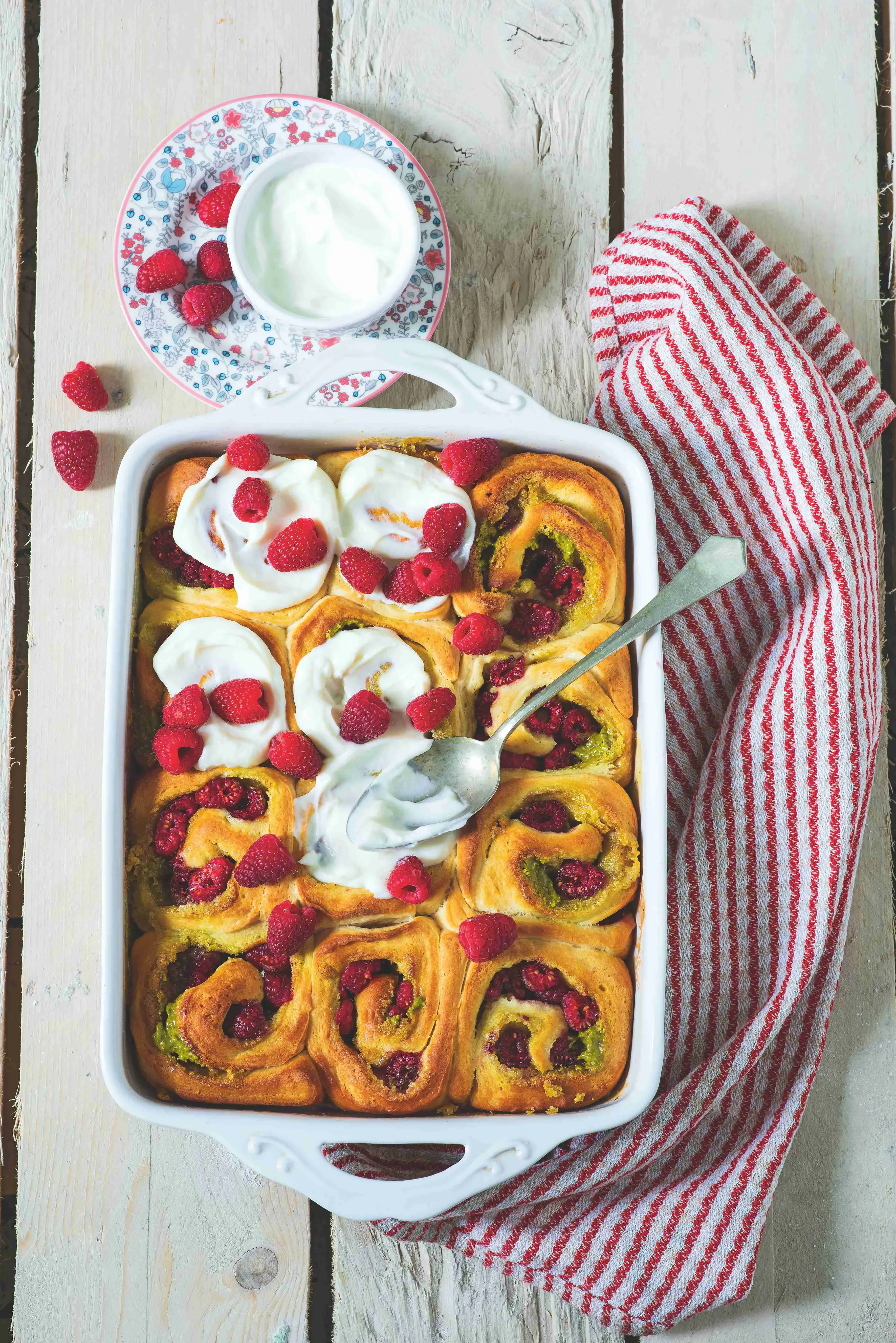 Skořicové šneky známe všichni, ale co byste řekli na variantu s pistáciemi a šťavnatými malinami? Tuhle letní variantu osvědčené klasiky si zamilujete na první dobrou.