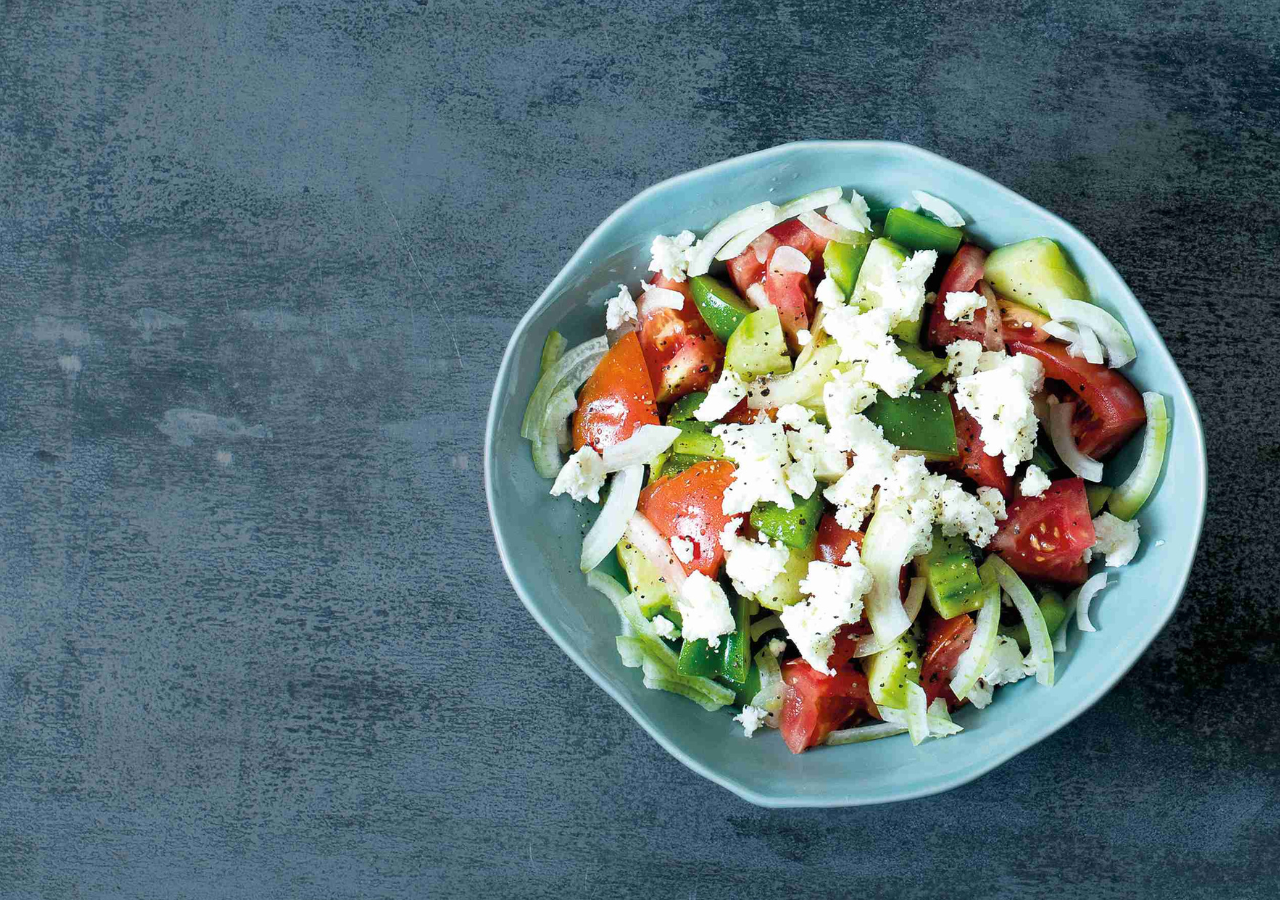 Šopský salát alias šopák je původně bulharský recept. Oblibě se ovšem těší nejen na Balkáně, ale i u nás. Není divu, kombinace čerstvých rajčat, okurky, papriky, štiplavé cibulky a slaného balkánského sýra je totiž dokonalá. Zálivka stačí jednoduchá z oleje a citronové šťávy nebo vinného octa.