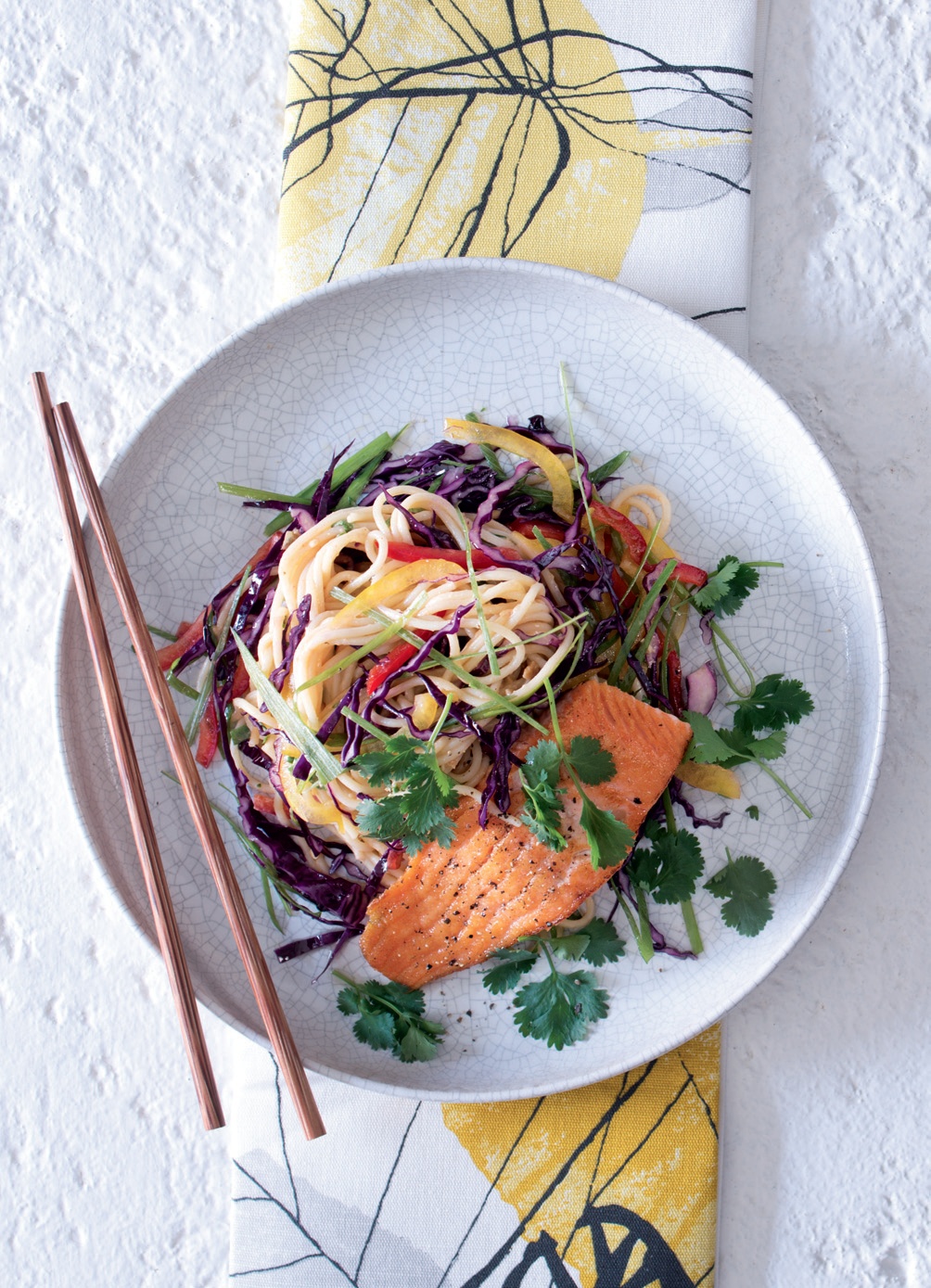 Připravte si těstoviny v thajském stylu, ovšem trochu zjednodušené. Proč se shánět po speciálních asijských nudlích, když skvěle poslouží i špagety? Špagety s arašídovou omáčkou a lososem nejsou jen z nouze cnost, ale plnohodnotný pokrm.