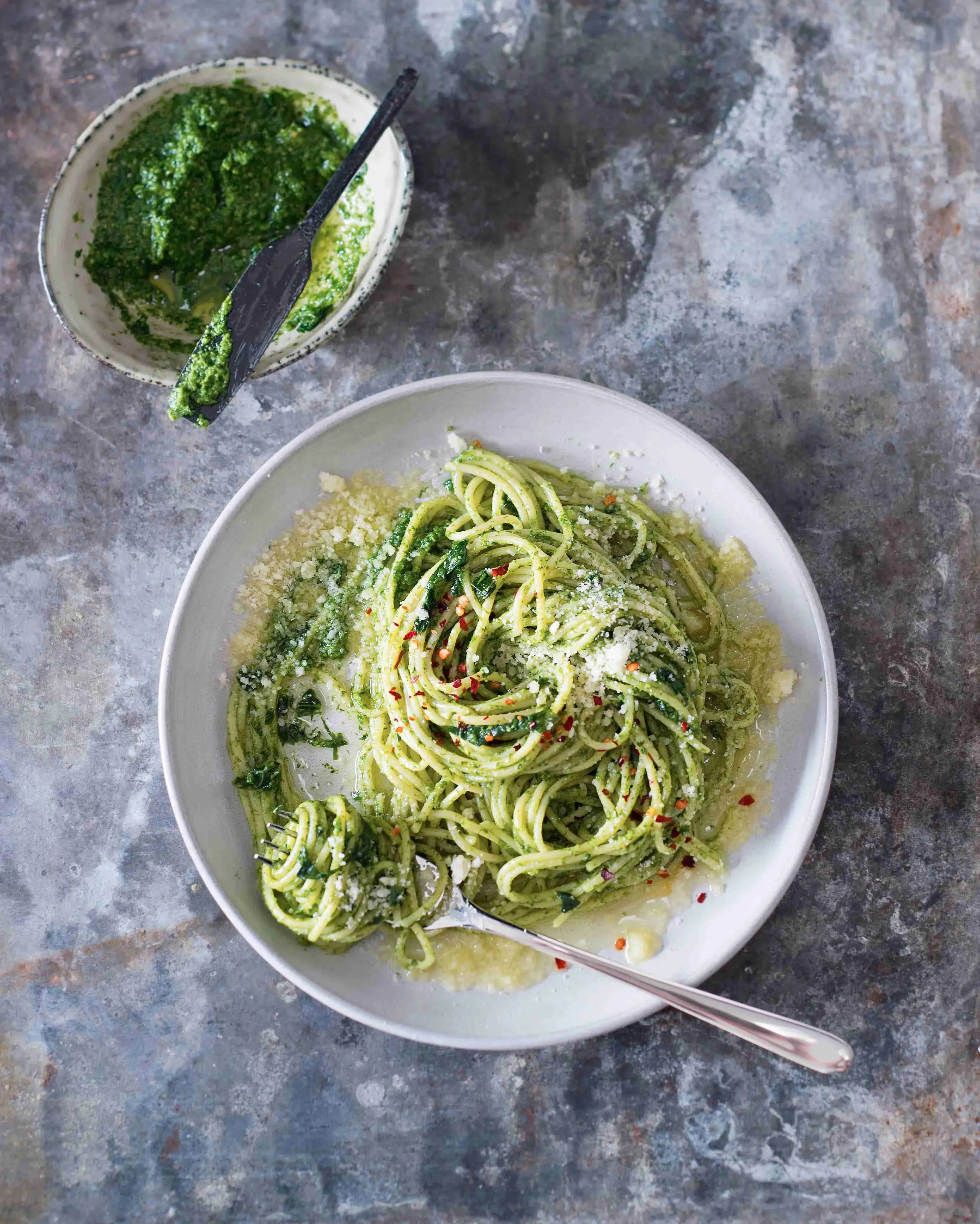 Těstoviny s pestem jsou velmi oblíbené a tady je náš osvědčený recept. Když budete mít víc času, dejte si práci a pesto z medvědího česneku utlučte v hmoždíři. Bude mít hrubší strukturu a kousky lískových oříšků v něm krásně křupou, což dodá pokrmu další rozměr. Špagety s pestem z medvědího česneku je chutný bezmasý pokrm, který připravíte během chvíle a z pár surovin.