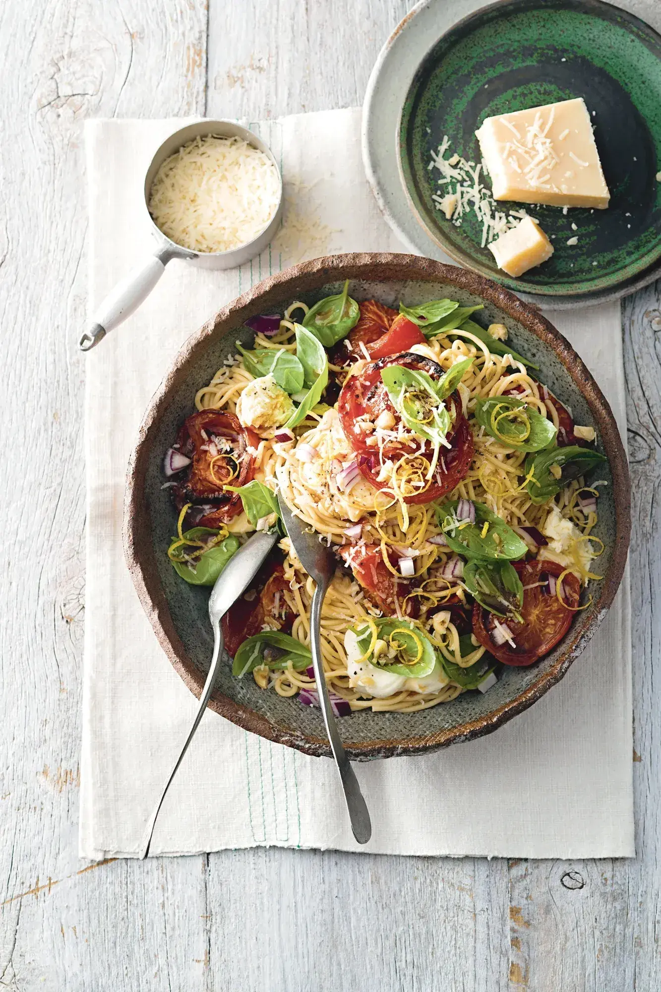 Špagety se třemi druhy sýra jsou senzační bezmasou variací, která potěší každého milovníka italské kuchyně. Spojení výrazného pecorina, vyzrálého parmazánu a jemně krémové mozzarelly těstovinám neskutečně sluší. A věřte, že si na nich pochutná celá rodina.