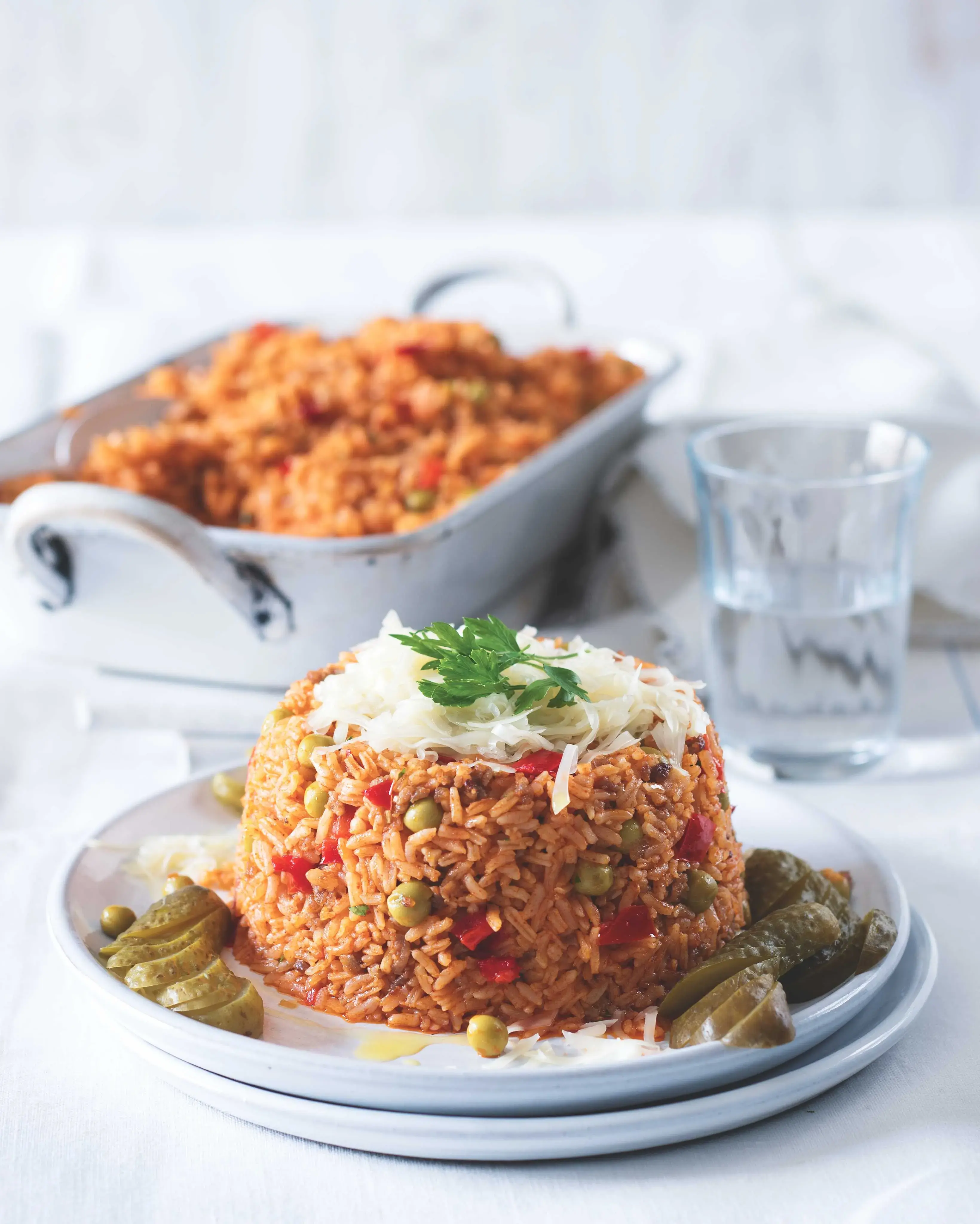 S tím italským nemá tohle rizoto společnou ani tu rýži, tohle rizoto je prostě něco úplně jiného. Na druhou stranu k suchému rizotu ze školní jídelny má tenhle recept naštěstí daleko. Trik je v dostatečném množství rajčatového protlaku a sterilovaném hrášku. My přidáváme mix mletého vepřového a hovězího masa, ale skvělé bude i s kuřecím.