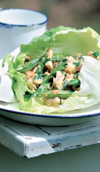 Na tento i jiné saláty se vyplatí pořídit si za studena lisovaný olej. Nejlepší je avokádový, který má krásně zelenou barvu a výraznou chuť a vdechne život jakémukoli salátu. Dobrou volbou jsou ale také oleje lisované z vlašských nebo lískových ořechů či z různých semínek.