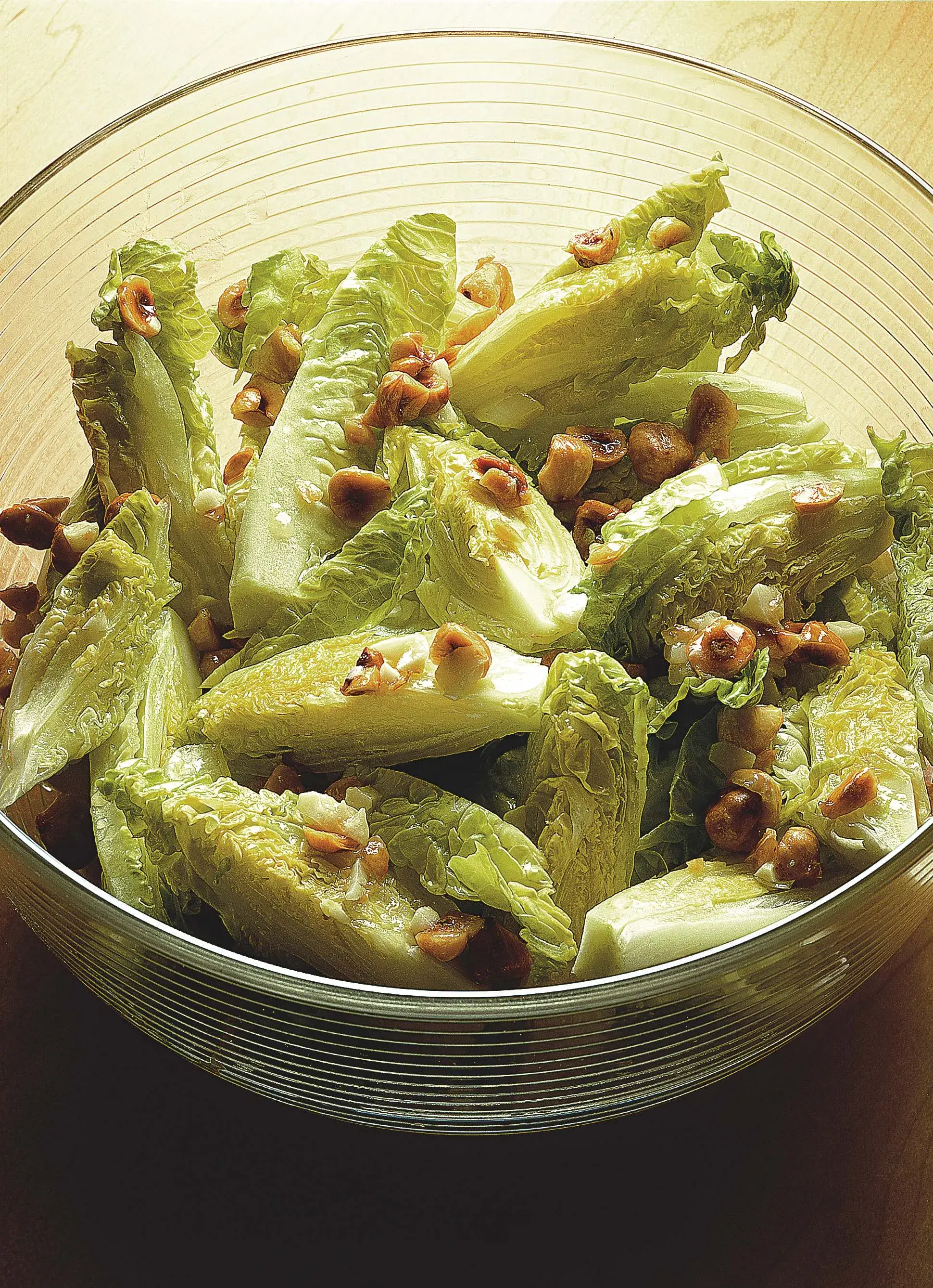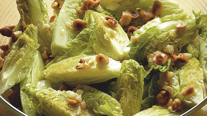 Kombinace salátu a oříšků je v české kuchyni zcela nedoceněná. Přitom patří k těm, na které se nezapomíná, a to v tom nejlepším smyslu! Máslo s citronem je jako dresink velmi neobvyklé, ale se salátem výborně ladí a navíc báječně zjemní jeho chuť.