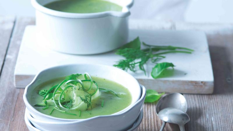 Skvělá a svěží polévka uvařená z netradičních surovin. V misce se totiž sejde skoro všechno, co byste normálně dali do salátu. Okurka a salát přitom s vývarem krásně fungují!