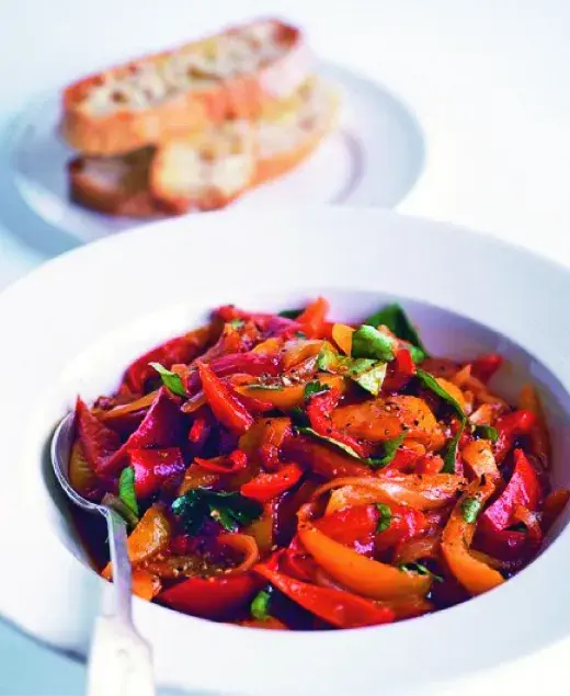 Když je horko, grilovaná masa nejlépe doplní zeleninové přílohy s výraznou chutí inspirované Itálií. Navíc peperonatu můžete i sterilovat, ve skleničkách pak vydrží celý rok.