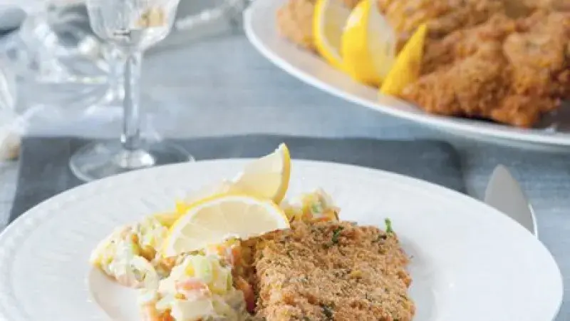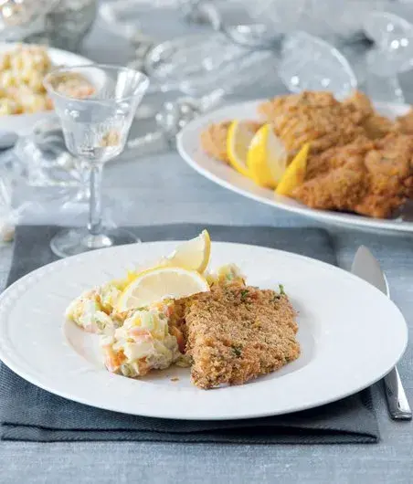 My kapra smažíme na oleji, ale hodí se i sádlo. Tuk na smažení můžete ovonět vhozením snítky rozmarýnu nebo tymiánu.