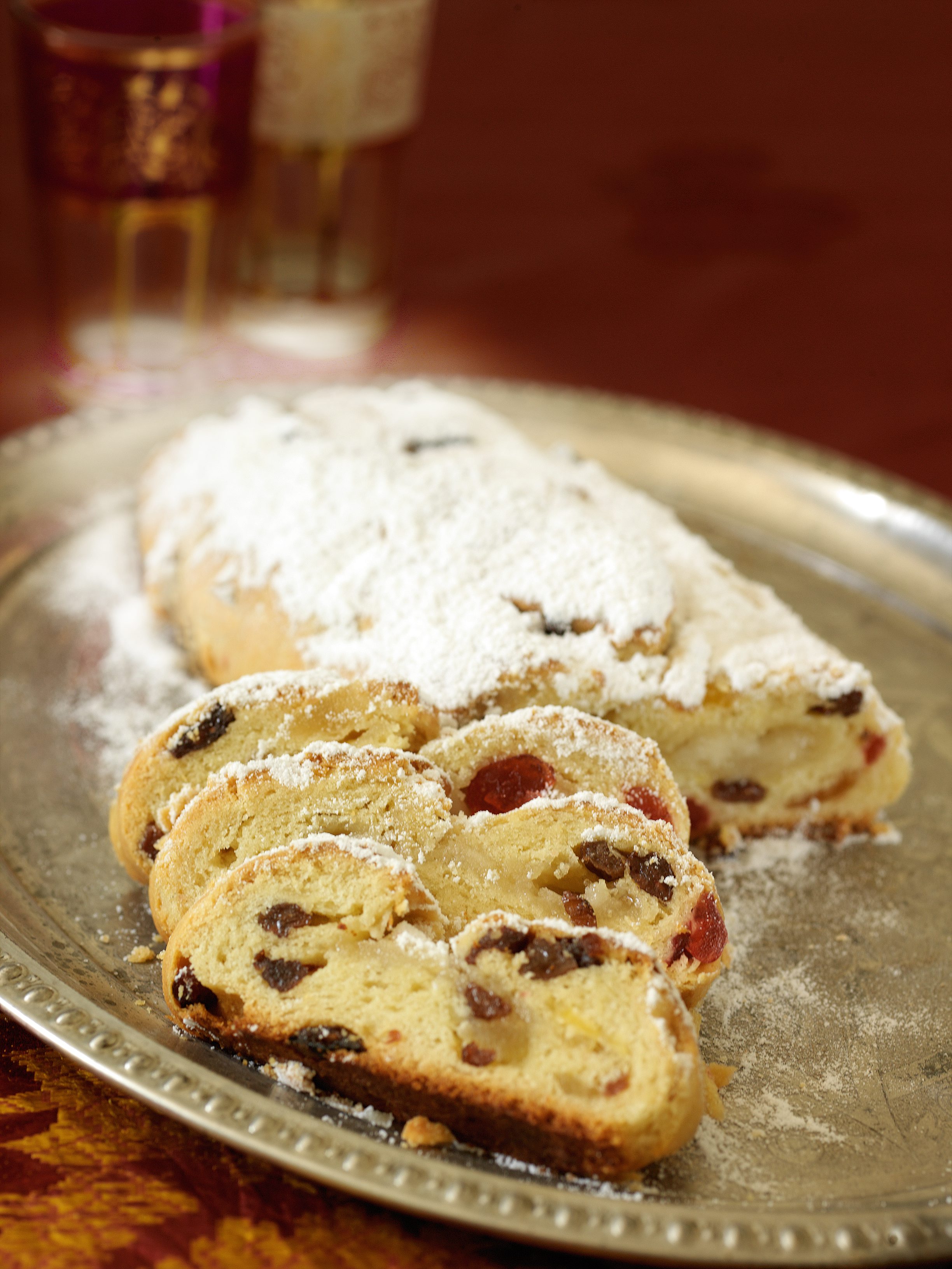 Tradiční německá obdoba naší vánočky, plná mandlí, kandovaného ovoce a marcipánu – to je štóla. Upečte a nechte ji dva až tři týdny odležet pevně zabalenou v alobalu. Štóla se bude na vašem štědrovečerním stole náramně vyjímat.