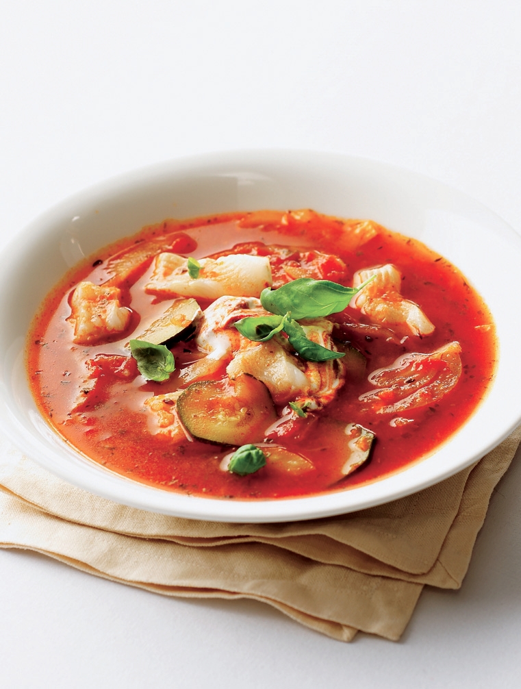 Cuketa, fenykl, lahodný vývar a k tomu ryba. Polévku můžete ozdobit chilli pastou smíchanou se zakysanou smetanou.